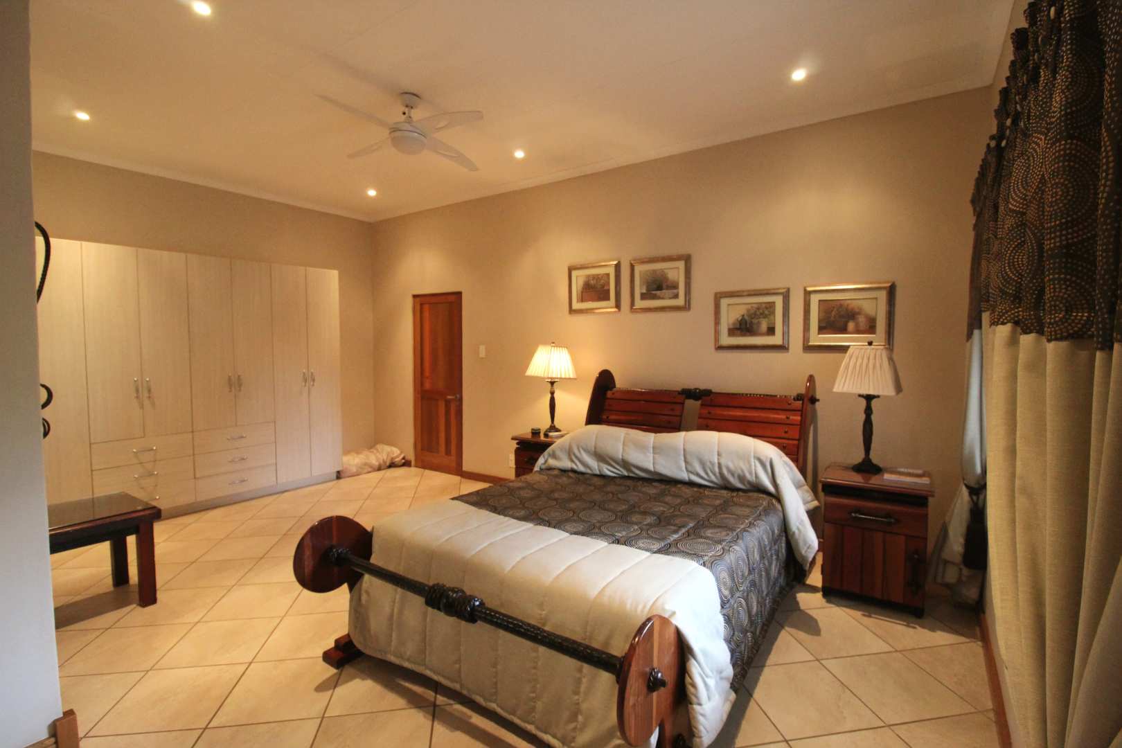 The main residence is a spacious 6-bedroom, 5-bathroom luxury home featuring two living areas and separate dining spaces. A separate 2-bedroom flat with en-suite bathrooms provides additional accommodation, while a well-appointed lapa with boma, built-in bar, kitchen, and swimming pool offers the perfect setting for entertainment and relaxation.