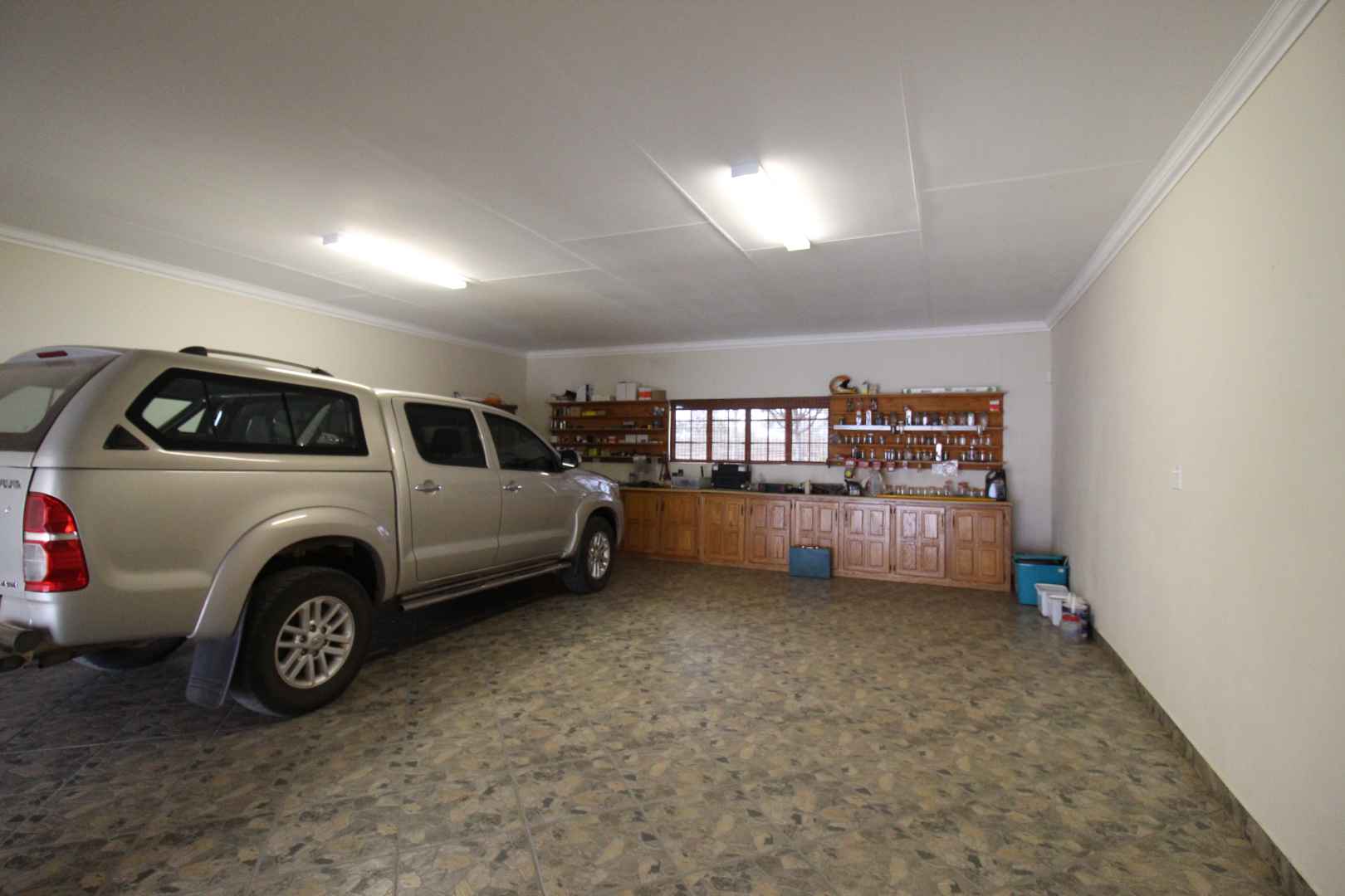 Supporting infrastructure includes an outside building with an office, gym, cold room, four garages (two open and two lock-up), and butchery facilities with an additional cold room. There are also three storerooms, staff housing for five, a 30kVA three-phase generator, and a 90 Landini tractor with trailer included.