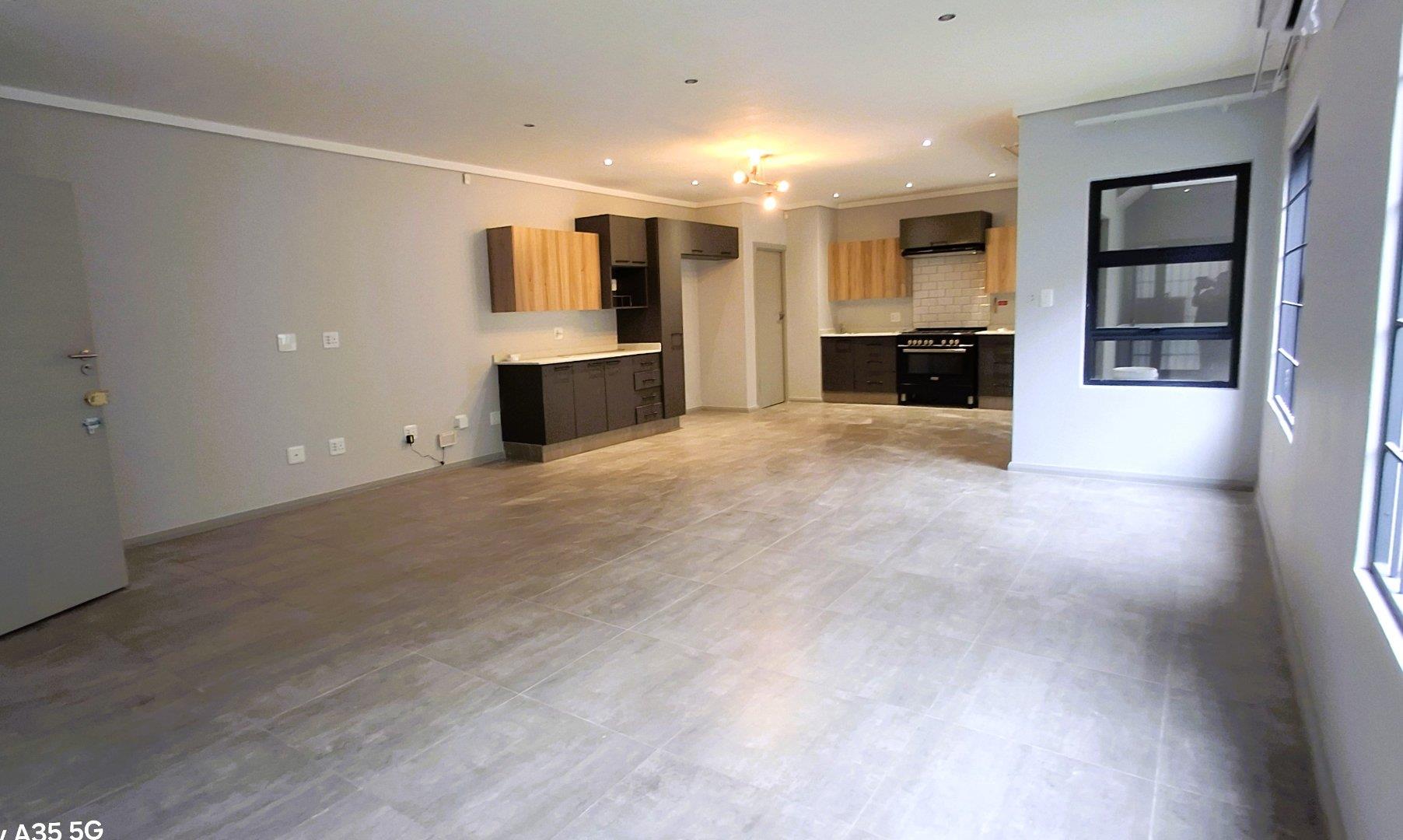 The heart of the home features a stunning kitchen that opens into a spacious lounge area, seamlessly connecting to a versatile braai/barbecue room. This dynamic space can be fully integrated into the living area, creating an ideal setting for entertaining guests. A conveniently located guest bathroom is also included on this level.
