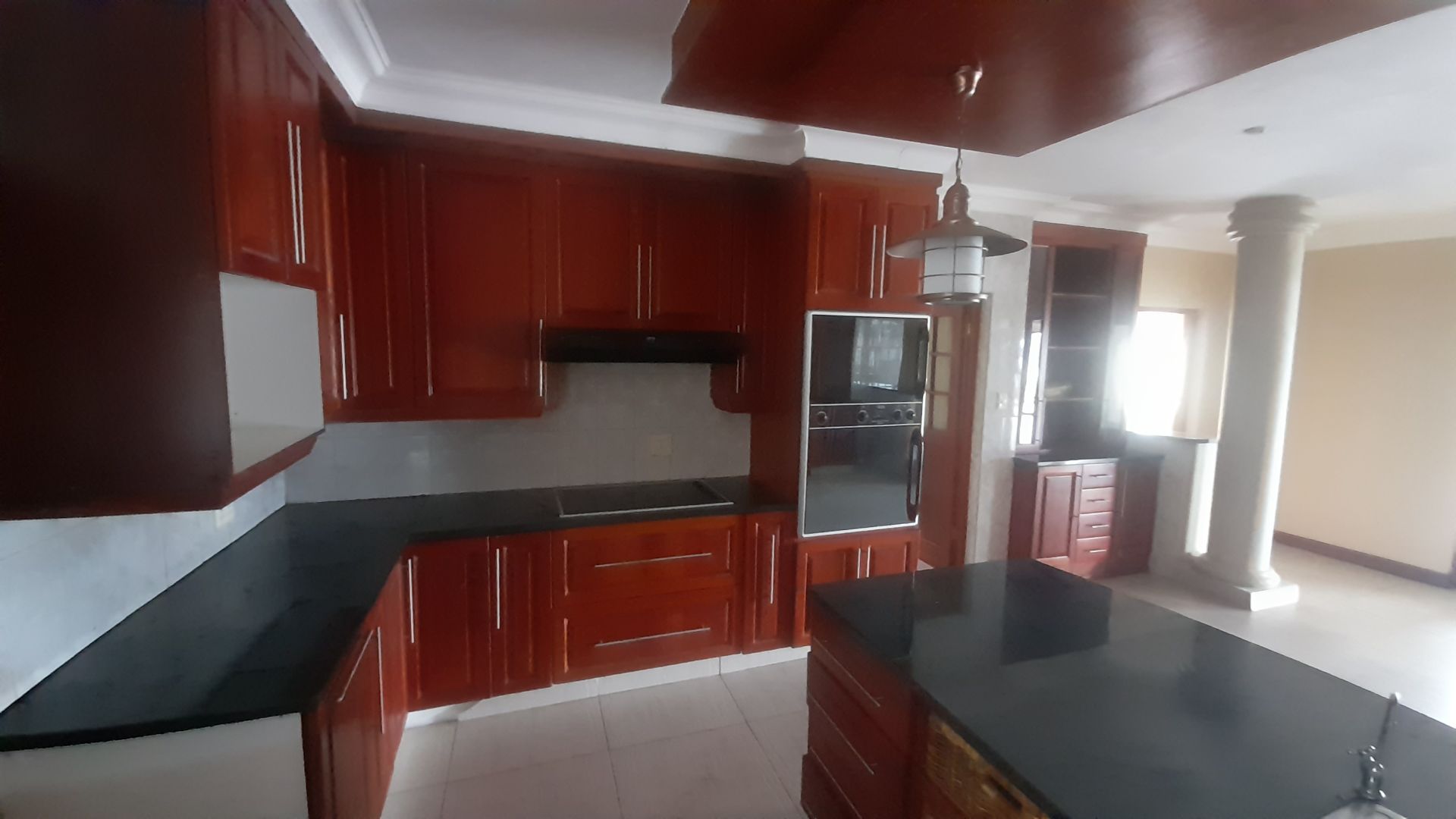 The main kitchen is a chef's dream, featuring an island, breakfast area, and solid cherry wood cabinetry. It is complemented by a spacious scullery and a walk-in pantry, ensuring ample space for all your culinary needs.