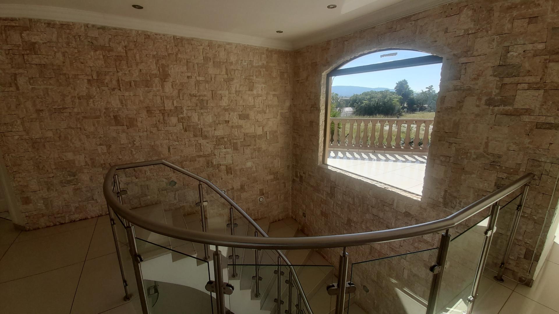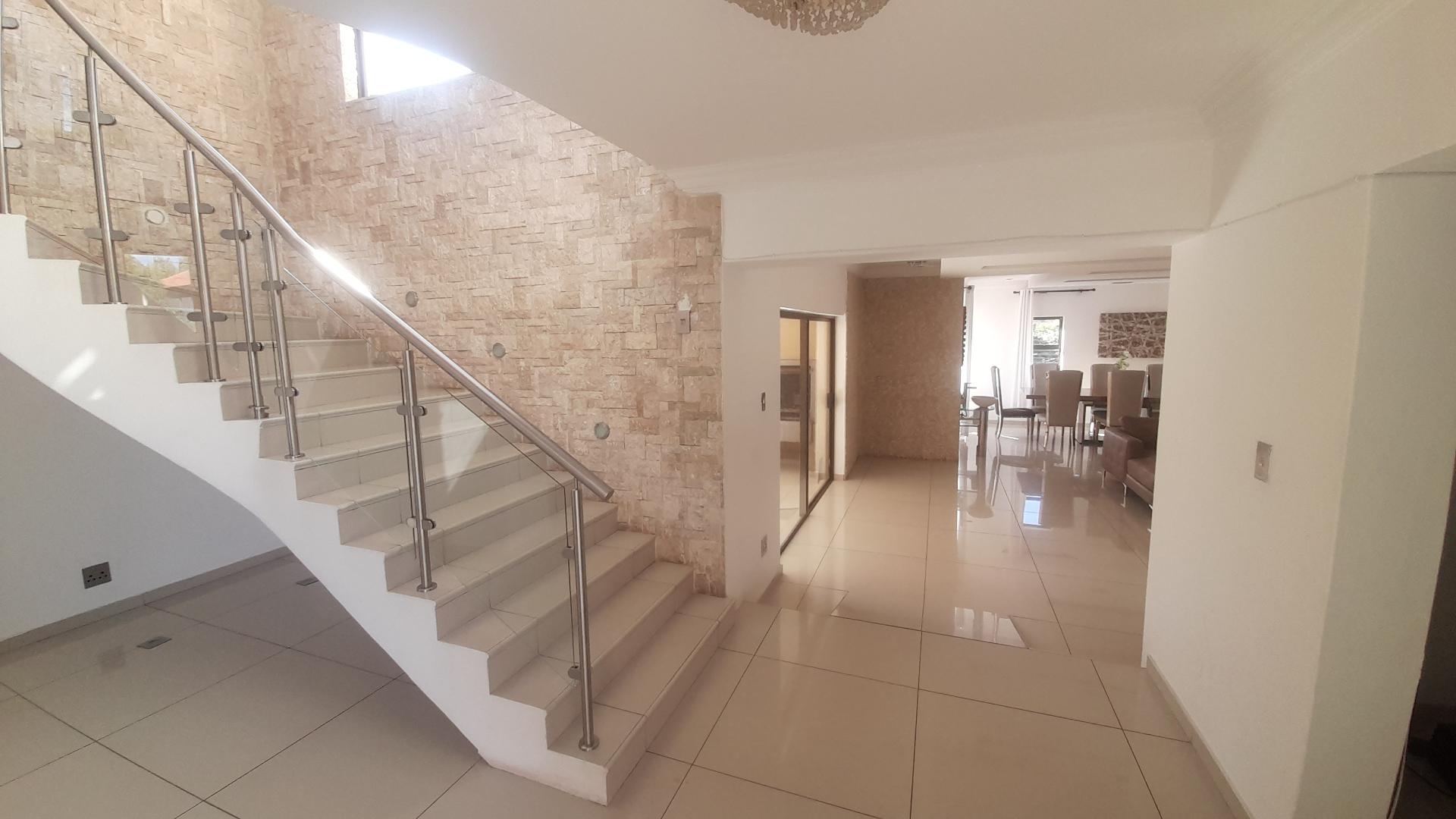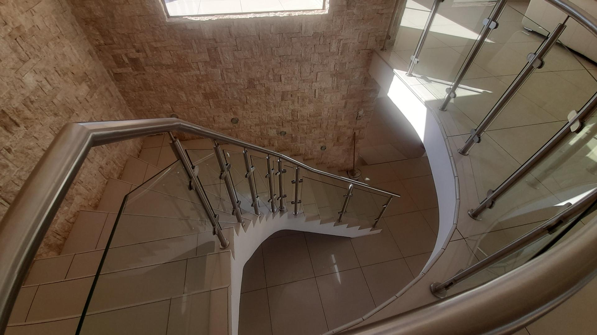 The architectural staircase is a striking centerpiece, leading you to the open-plan living spaces that exude elegance and sophistication. Admire the fine details such as porcelain tiles, chandeliers, and modern lighting features that enhance the ambiance throughout the home.
