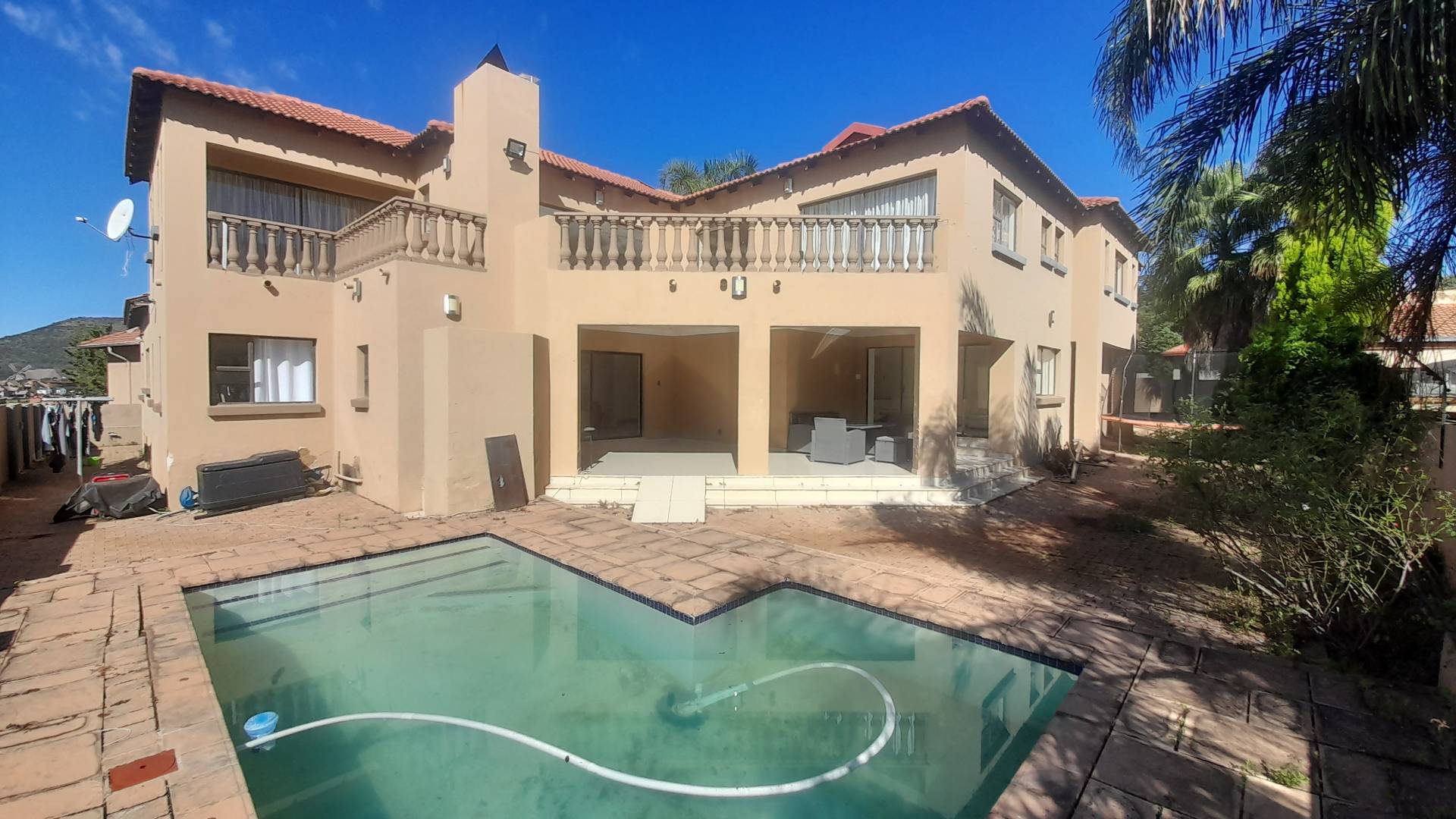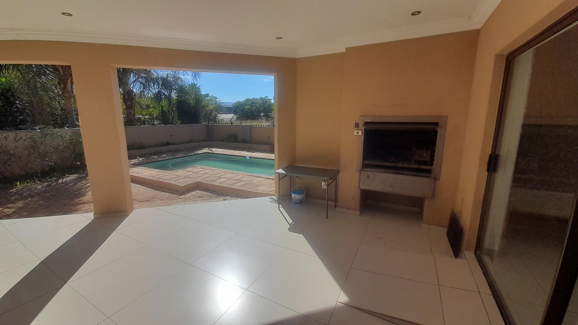 The state-of-the-art kitchen is equipped with a separate scullery, walk-in pantry, and a dedicated laundromat with convenient outdoor access. Entertain guests on the expansive patio, complete with a built-in braai, while enjoying views of the sparkling pool.