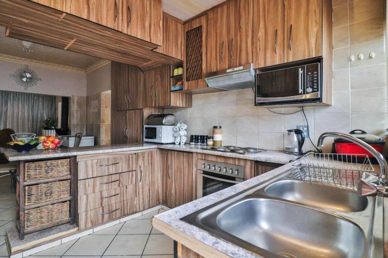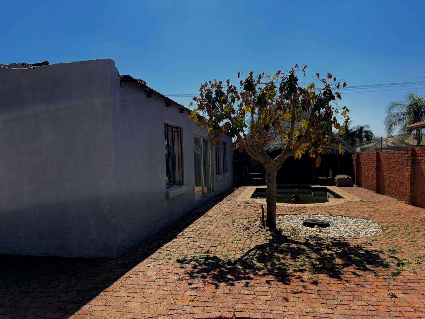 Outside, the property offers a lockable automated gate (motor replacement required), a borehole, a carport for two vehicles with extra parking space, a delightful lapa with a braai area, a swimming pool, and a Wendy House. There is also a flatlet featuring a spacious bedroom, separate toilet and shower, wall units, a kitchen with units, and a dining room – offering potential rental income.