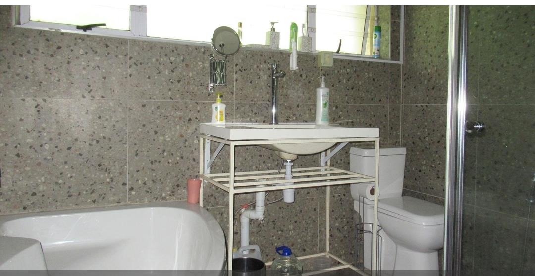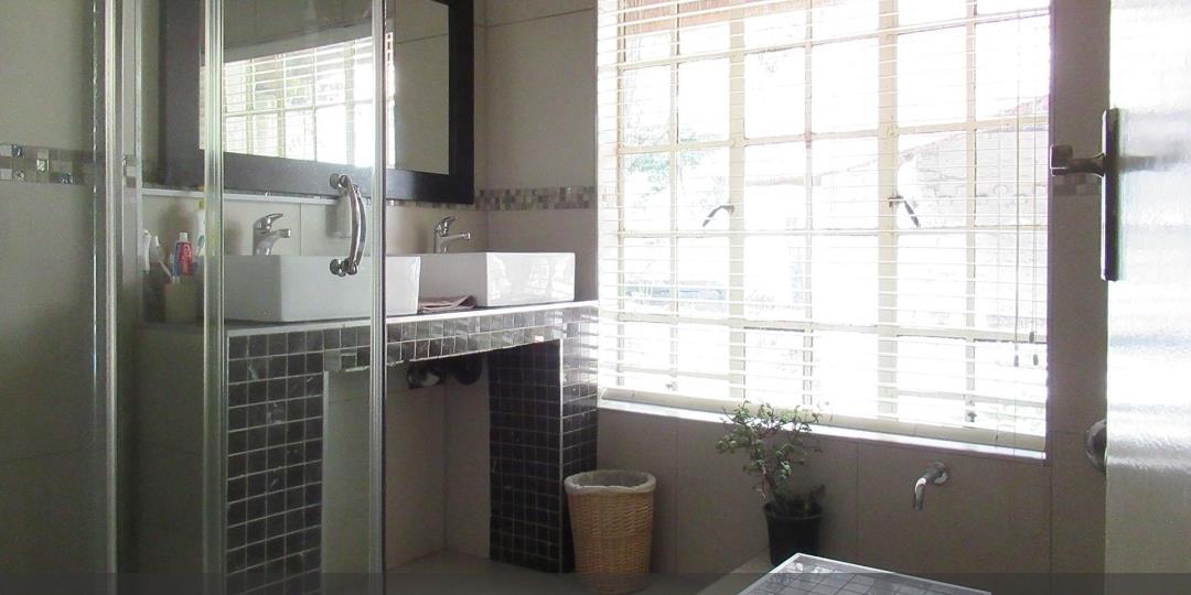 The outdoor space is equally impressive, with two secure garages and two additional carports. The expansive yard, sprawling over an erf size of 3,459 square meters, can easily accommodate up to 20 more vehicles, presenting endless possibilities for further development or landscaping.