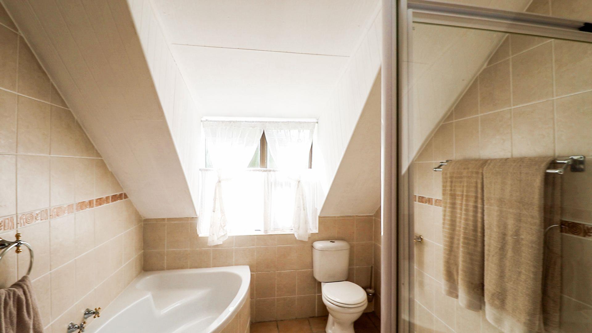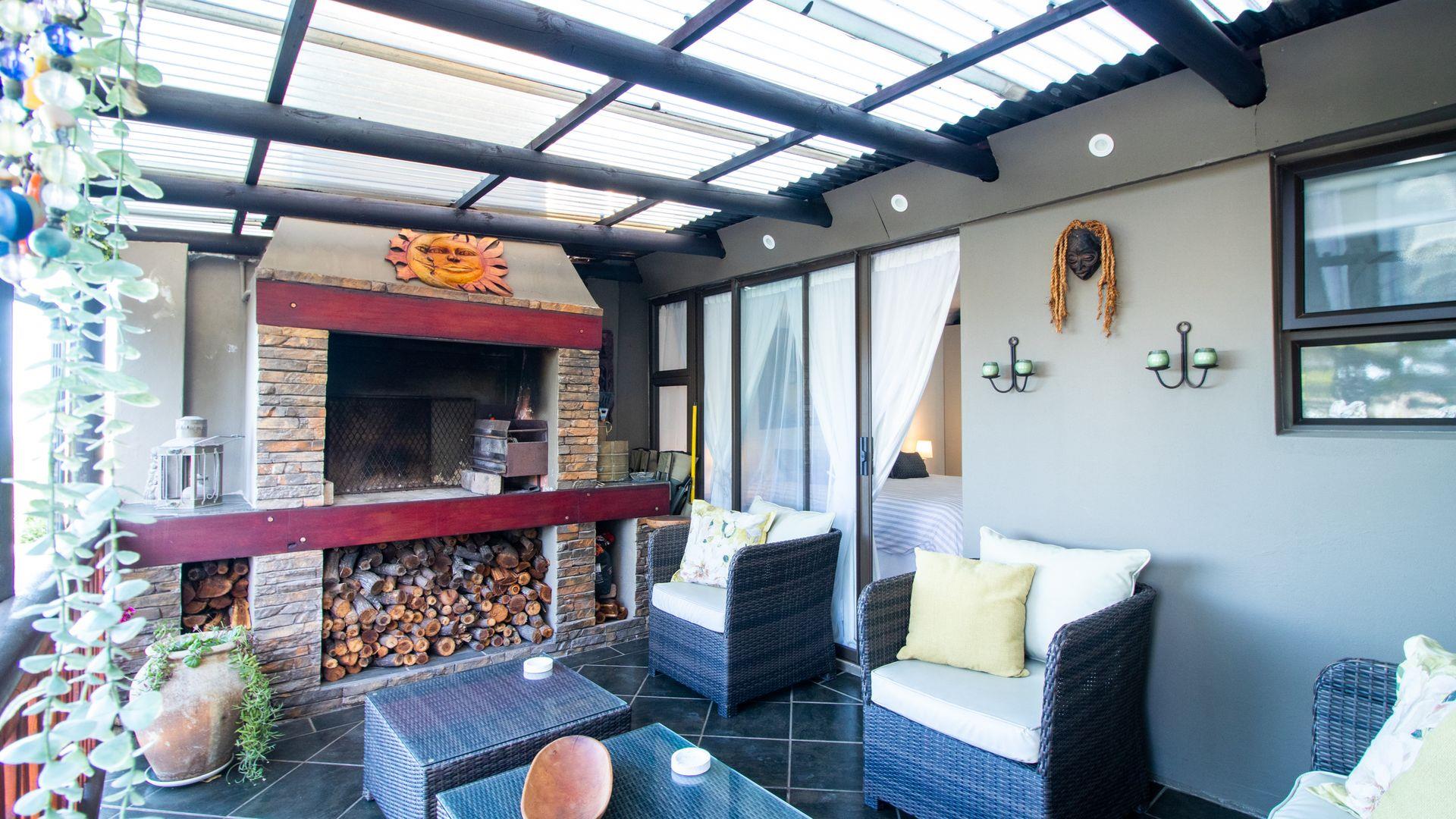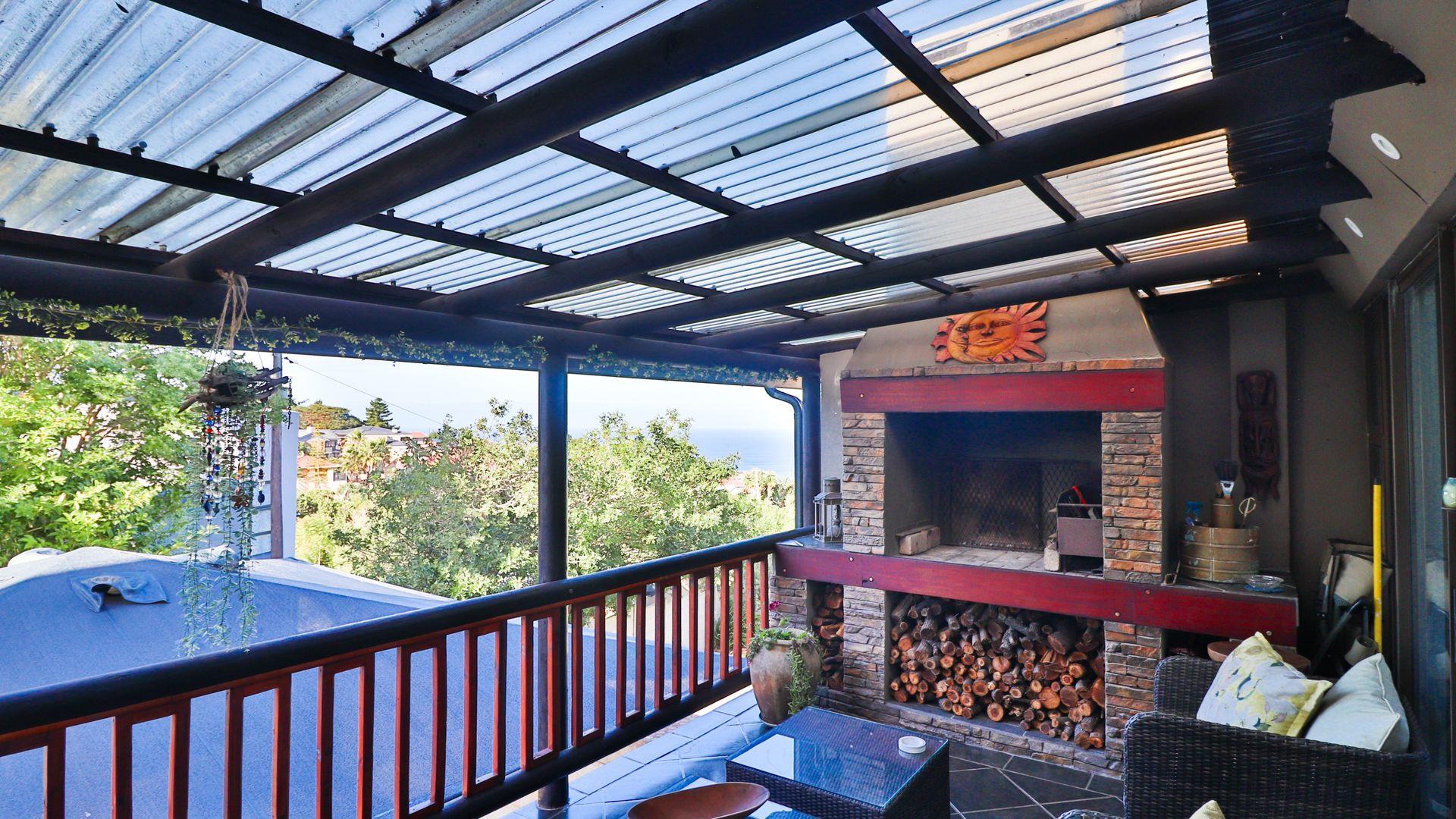 Find comfort in 2 additional bedrooms, one boasting an en-suite with a luxurious spa bath. Cozy up in the warm living room with underfloor heating, and enjoy the practical kitchen with a gas stove and ample storage. Step out on the patio with a built-in braai, and stunning ocean views.