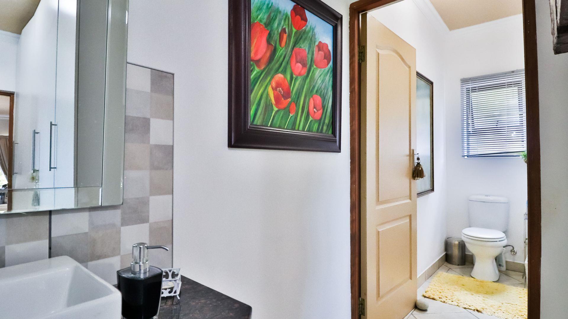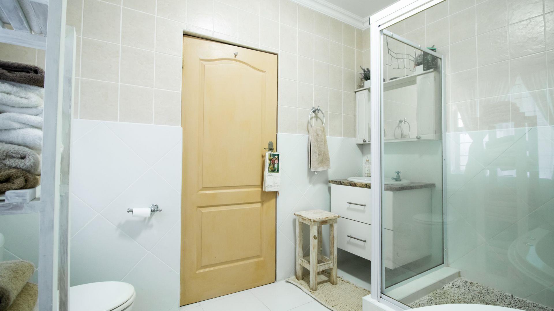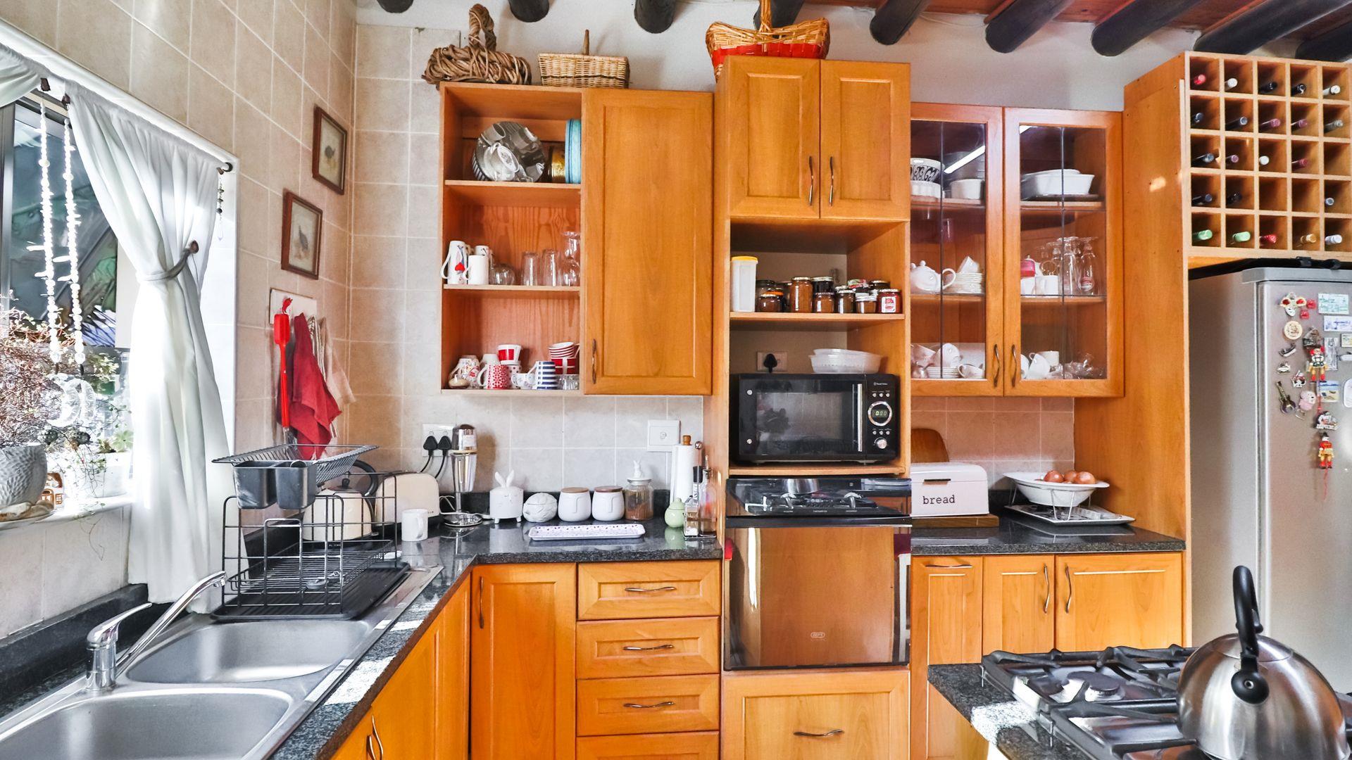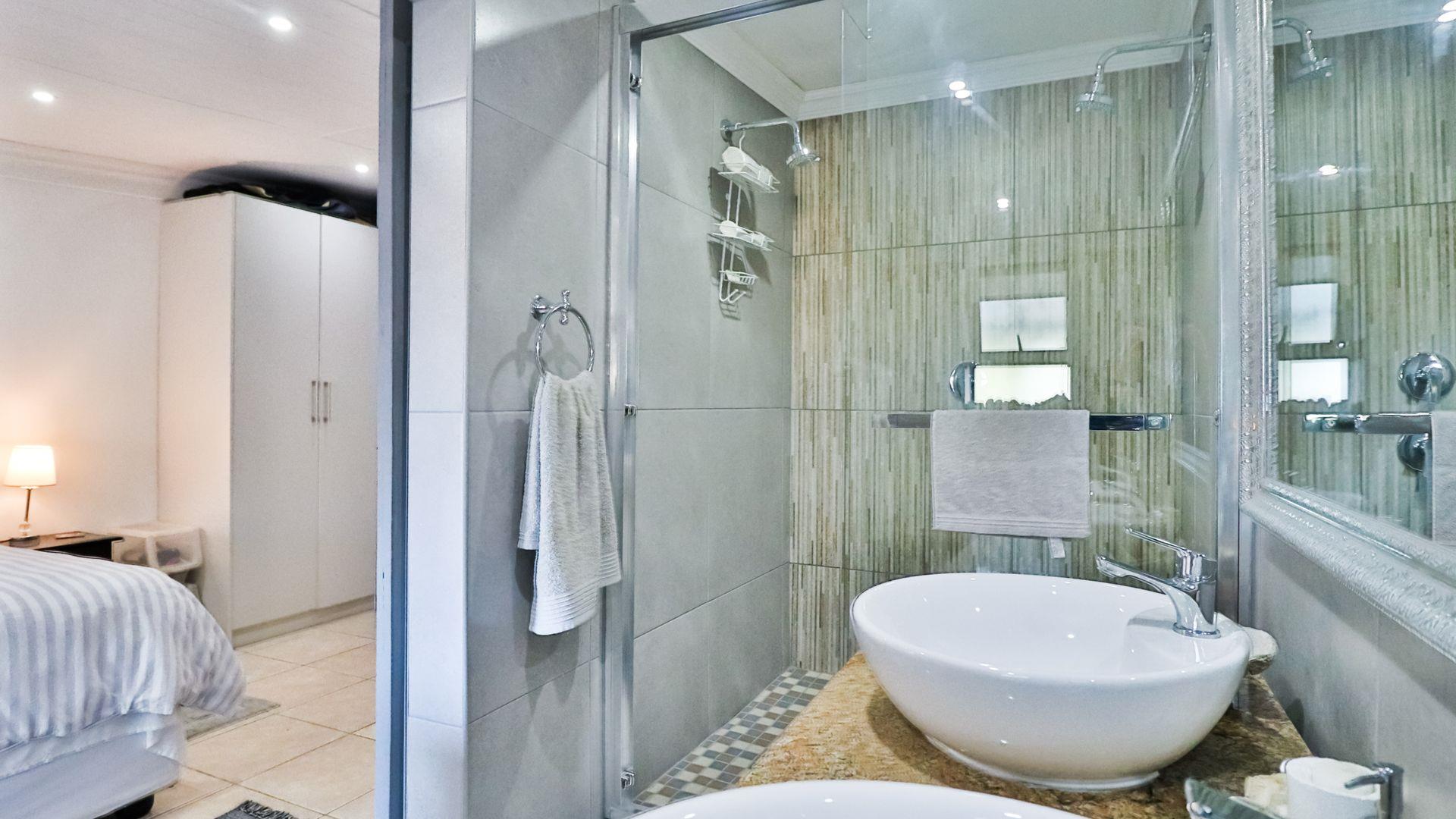 Find comfort in 2 additional bedrooms, one boasting an en-suite with a luxurious spa bath. Cozy up in the warm living room with underfloor heating, and enjoy the practical kitchen with a gas stove and ample storage. Step out on the patio with a built-in braai, and stunning ocean views.