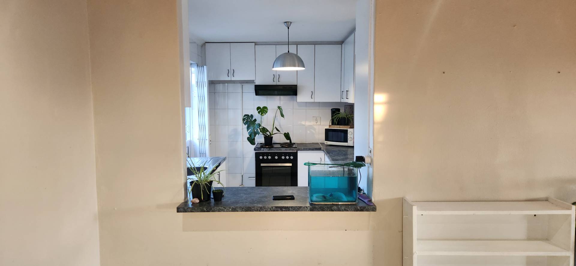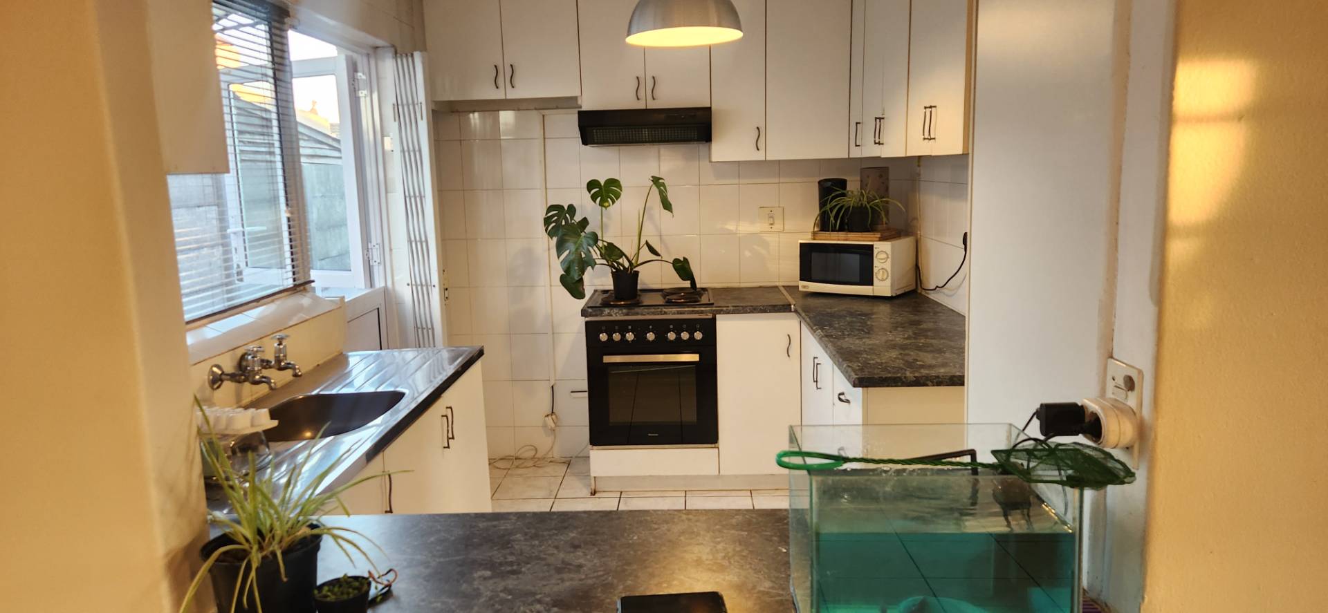 An open-plan dining and living area welcomes you to the home, featuring an awesome serving nook to the kitchen. The kitchen is fitted with well maintained (and ample) cupboards.