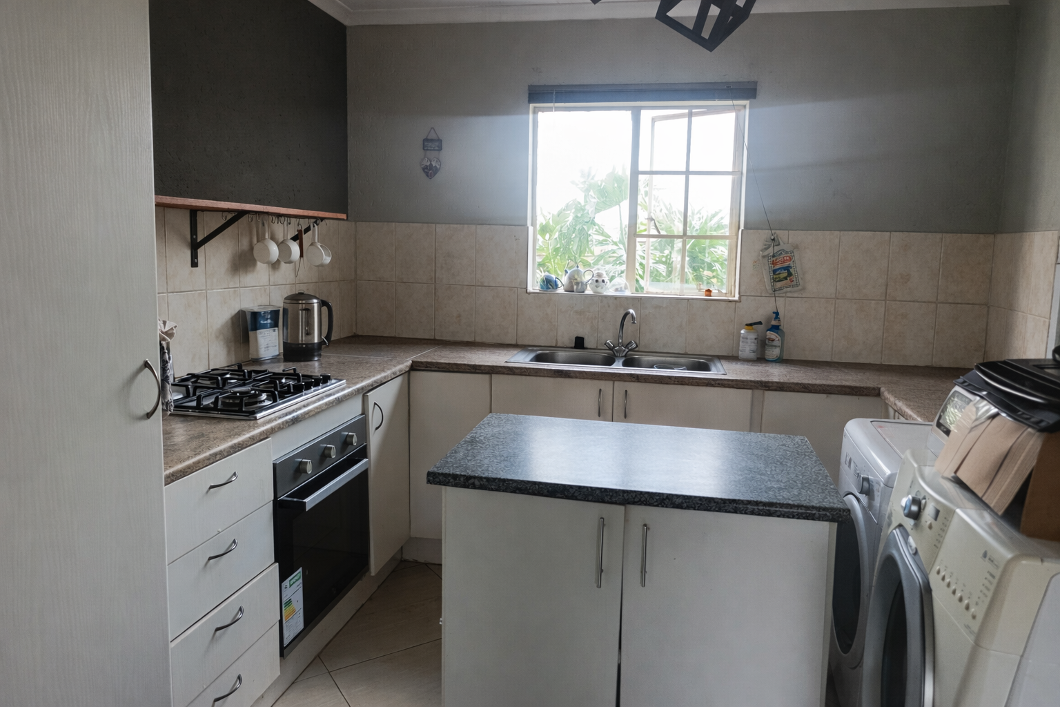 The well-appointed functional kitchen offers ample storage space and a gas stove, catering to all your culinary needs.