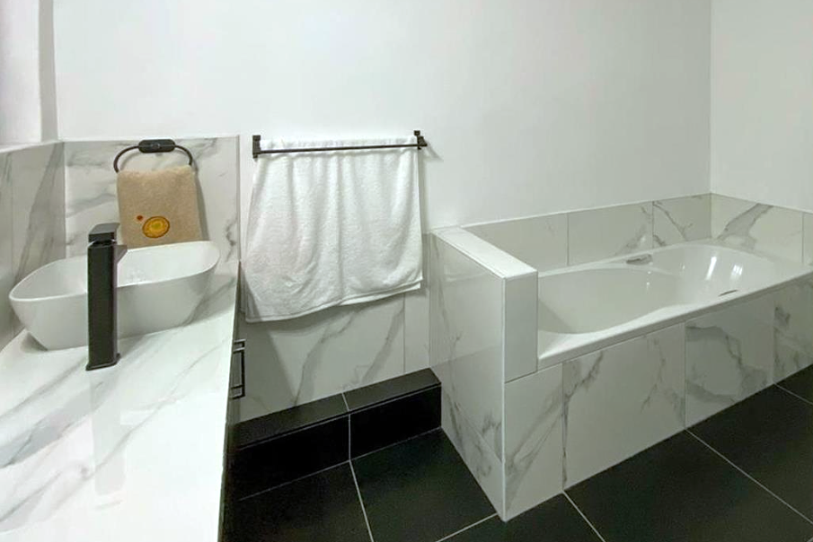 The main house boasts contemporary finishes and thoughtful design, ensuring a luxurious lifestyle for its residents. The open-plan living and dining areas create a welcoming atmosphere, perfect for entertaining guests or enjoying quiet family evenings. The kitchen with it's lovely fittings is the heart of the home.