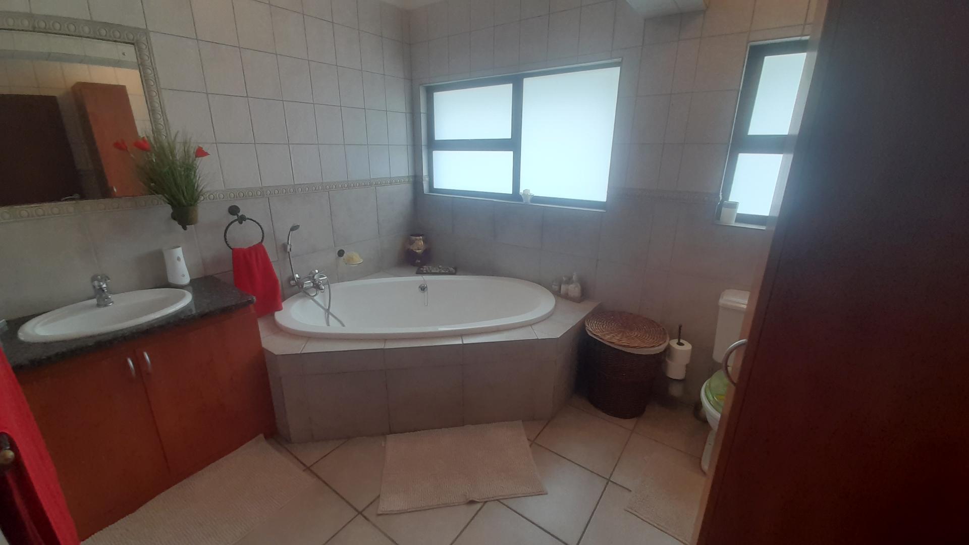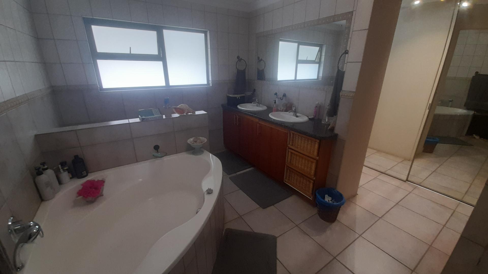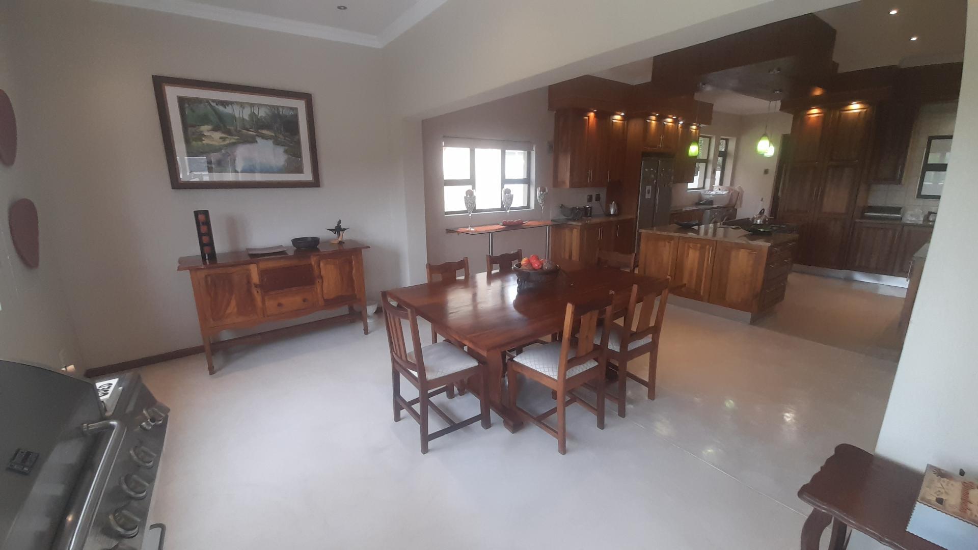 Welcome to an exquisite, move-in-ready property where no maintenance is needed. This home boasts a very modern kitchen adorned with African teak cupboards, providing both style and functionality. The living areas feature elegant Semcrete flooring, while the bedrooms are enhanced with sleek laminated flooring for added comfort.