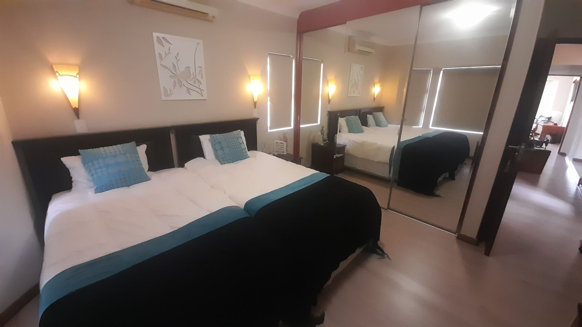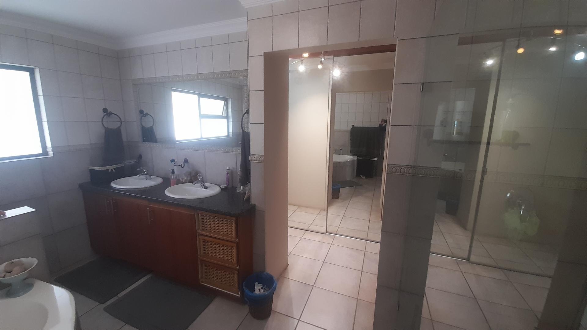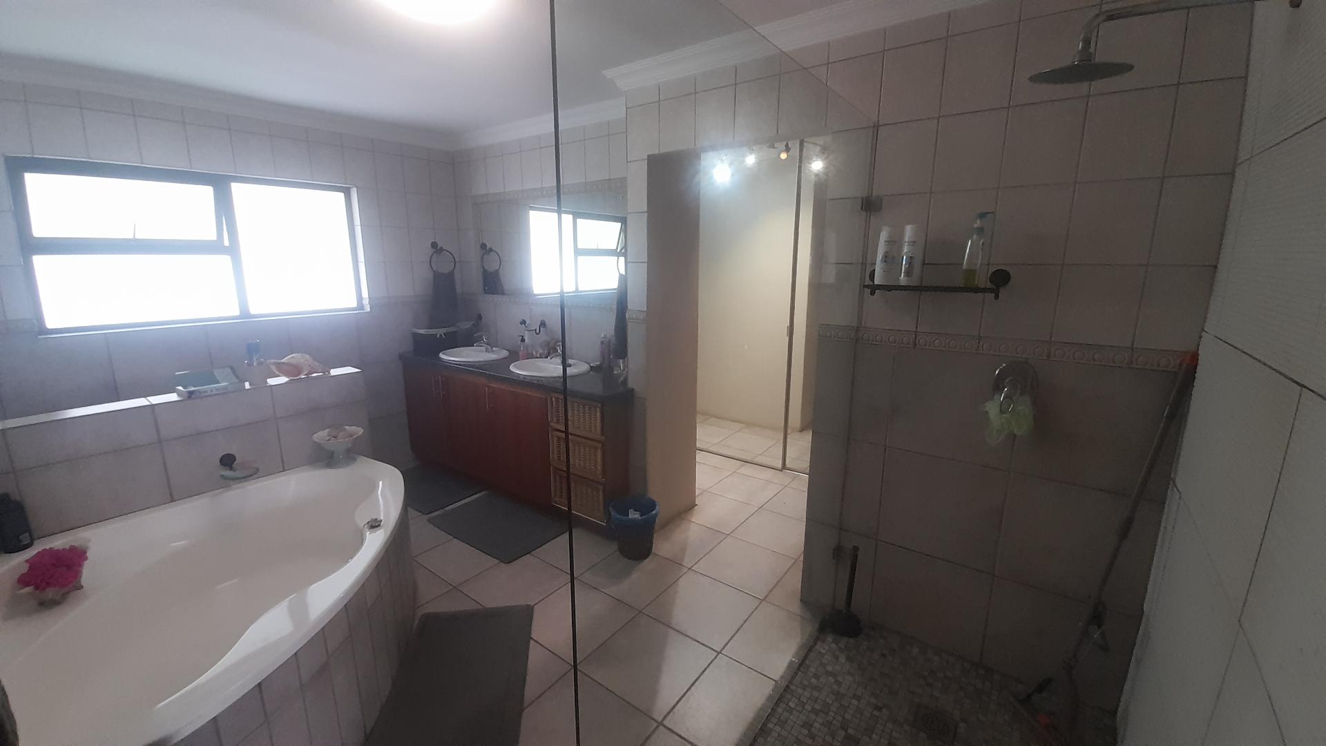 Welcome to an exquisite, move-in-ready property where no maintenance is needed. This home boasts a very modern kitchen adorned with African teak cupboards, providing both style and functionality. The living areas feature elegant Semcrete flooring, while the bedrooms are enhanced with sleek laminated flooring for added comfort.
