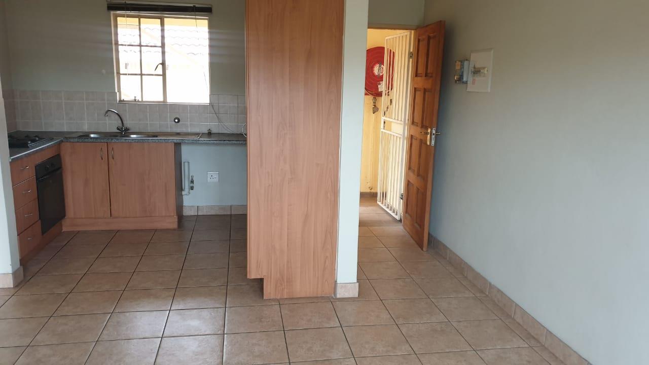 The inviting lounge area seamlessly opens up to a beautiful patio and further, into a communal garden, offering a serene environment to unwind or entertain guests. Additionally, residents can enjoy the communal braai area, perfect for social gatherings and enjoying the outdoors.
