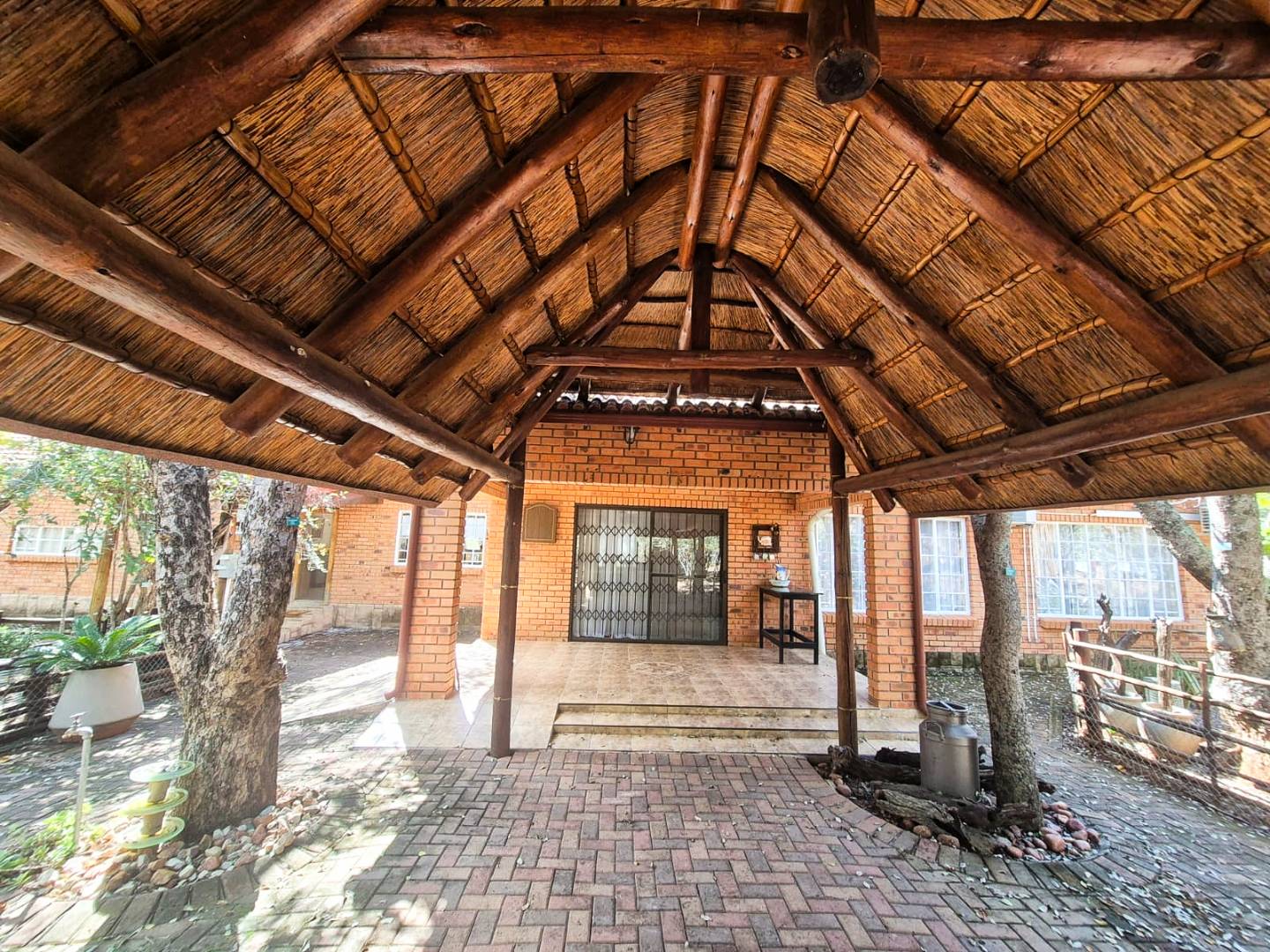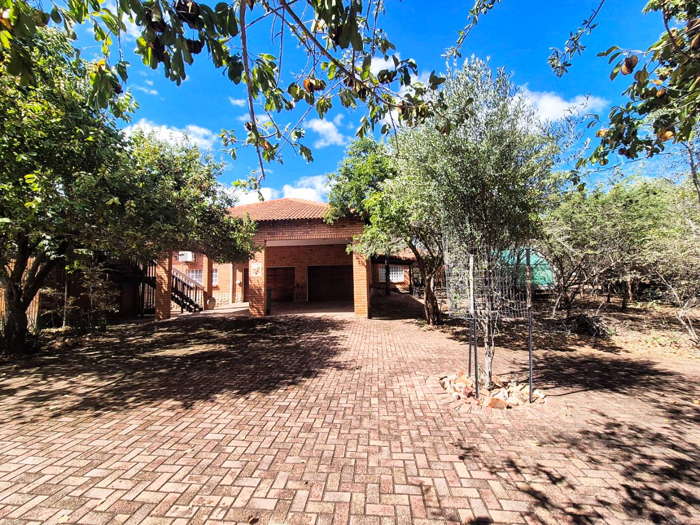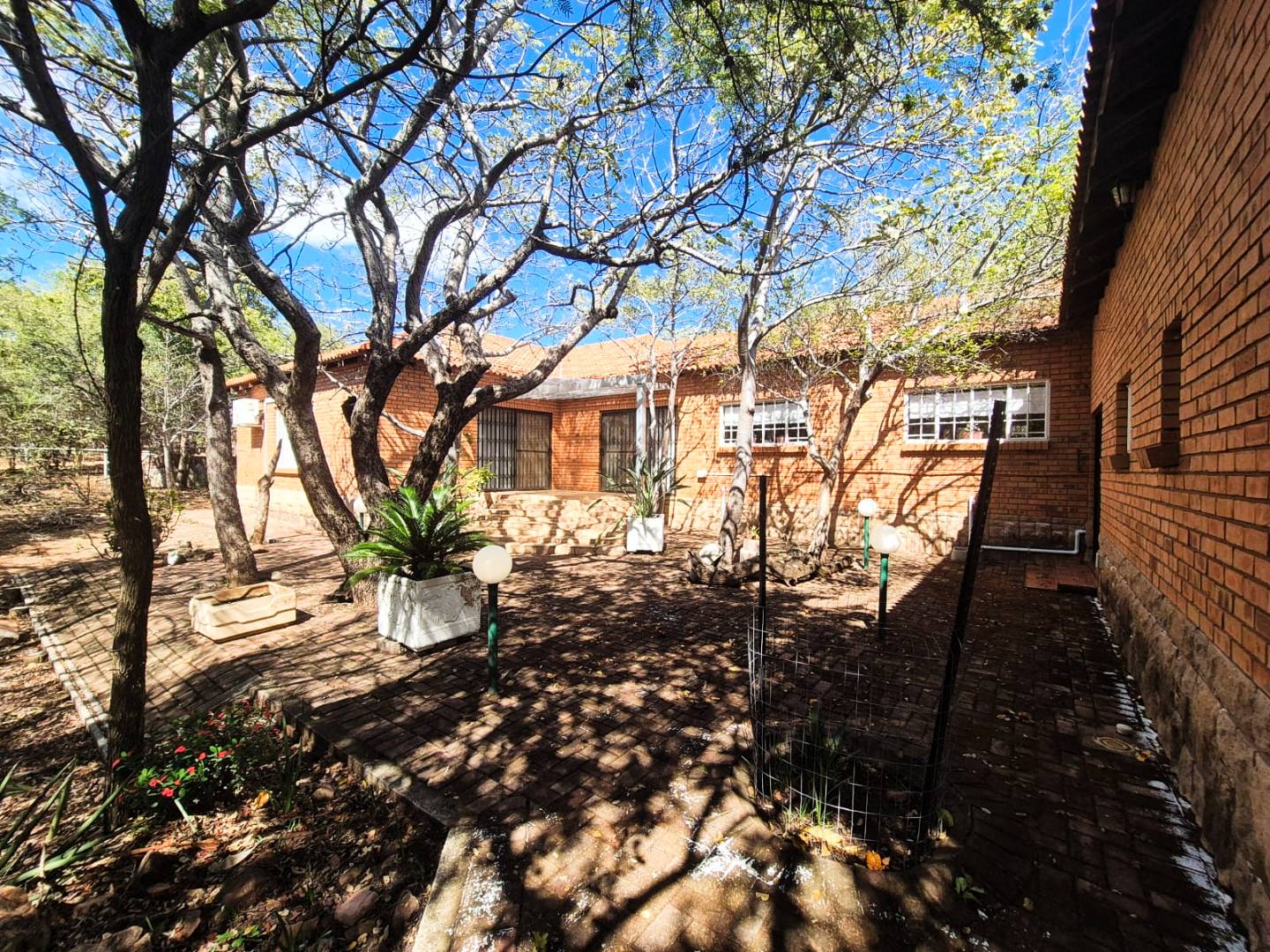 Further conveniences include Wendy house for extra storage, indoor and outdoor clotheslines, porche outdoor roller blinds for shade and privacy, and paved driveways around the house. For tranquil moments, visit the small church with IBR roofing and a water fountain. A 5KVA standby generator ensures uninterrupted power supply, while a large windmill from Karoo adds a picturesque touch to this stunning property.
