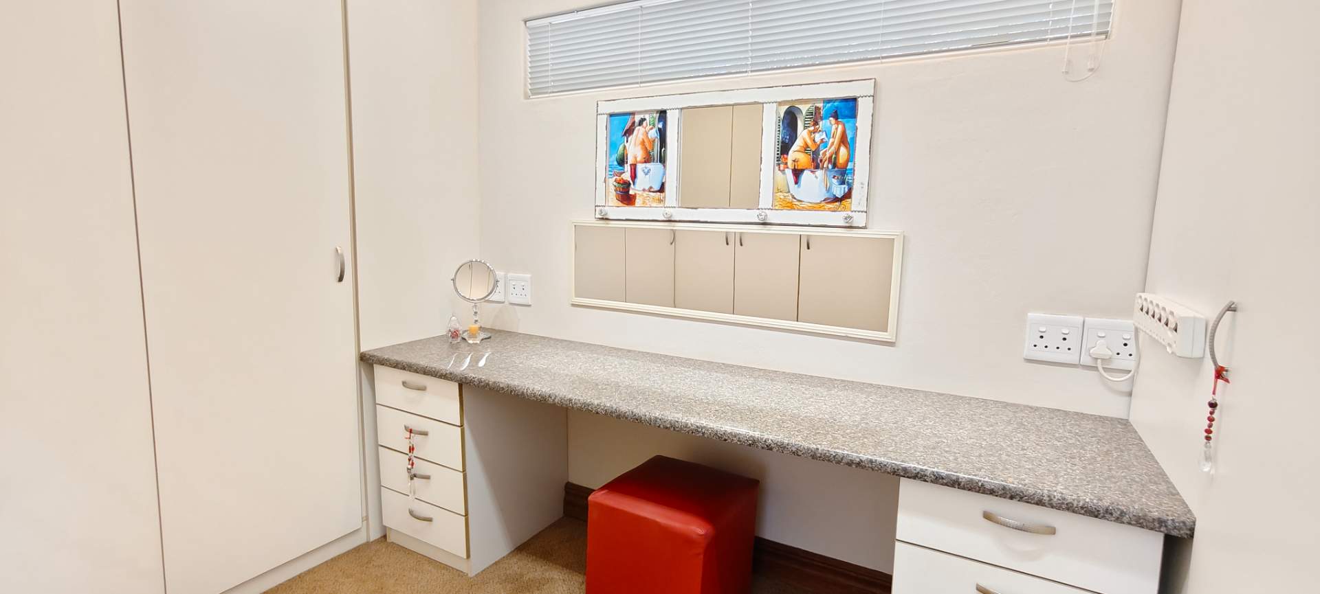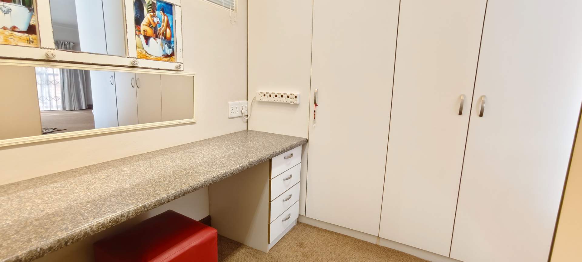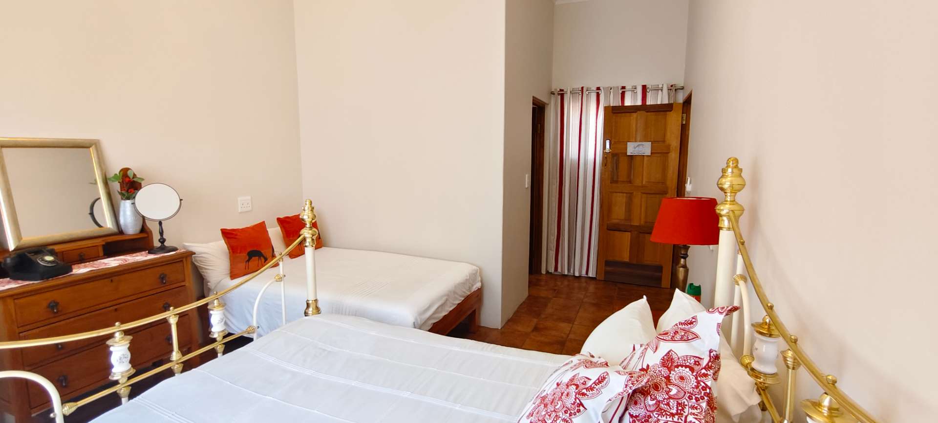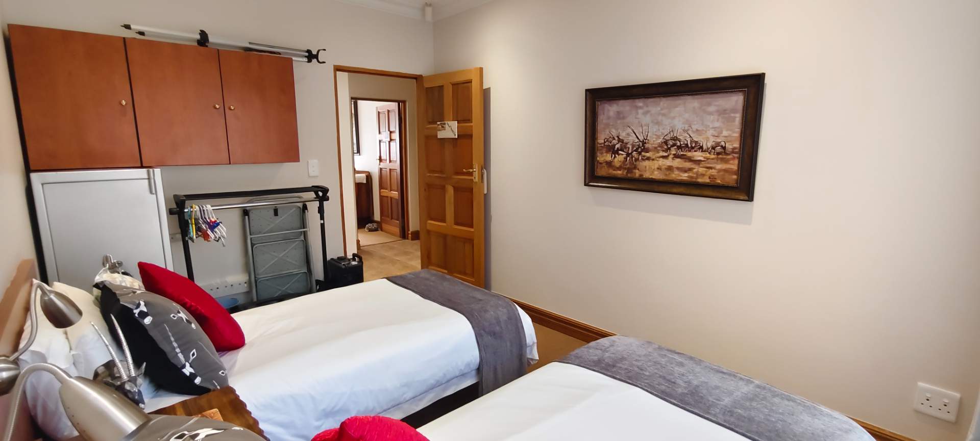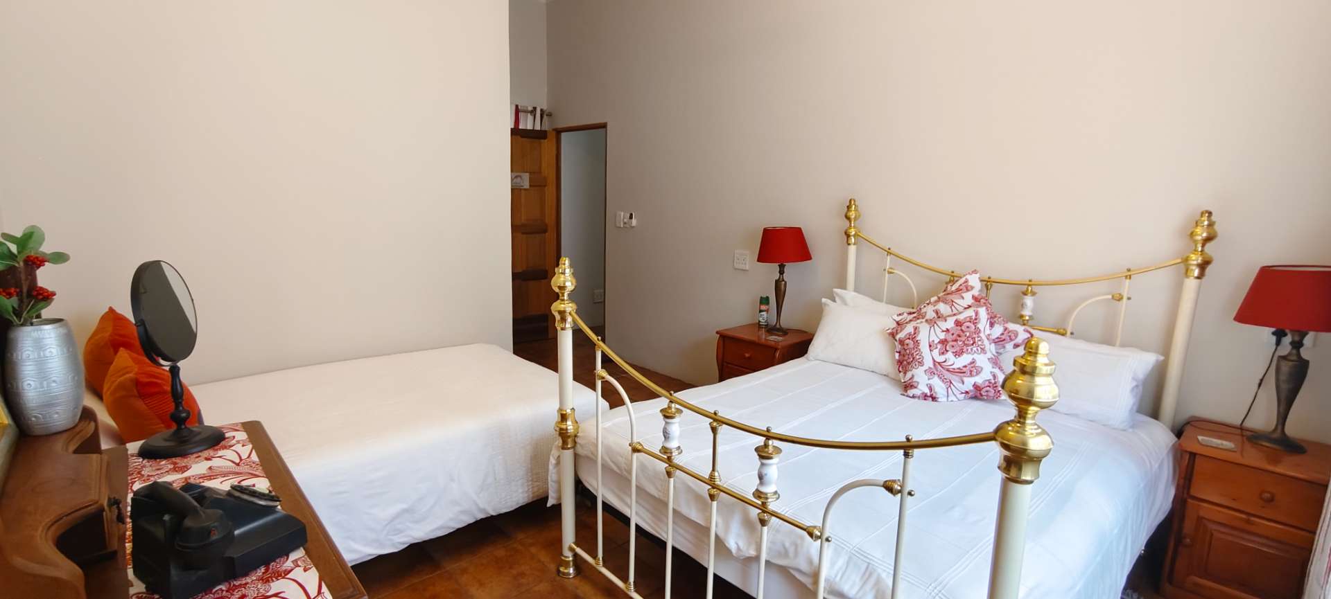 The property features two additional bedrooms outside the main house. One has an entrance from the garage and includes an air conditioner, toilet, and basin. The other is a flatlet with an air conditioner and bathroom, perfect for guests or extended family.