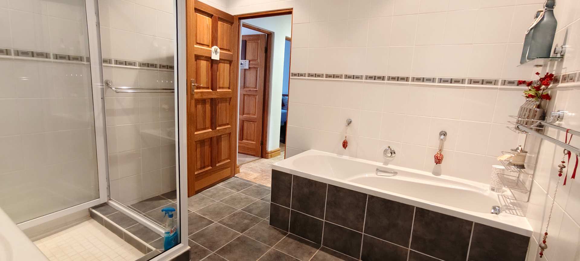 For those who love to entertain, the property offers a covered lapa with a jet master built-in braai and bread oven. Enjoy sunny days by the covered swimming pool equipped with a 0.75KW pump and filter, or relax on the wooden deck designed for sundowners. A private outdoor shower adds to the charm of this entertainment haven.