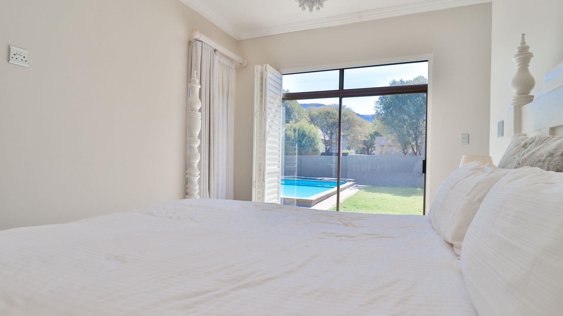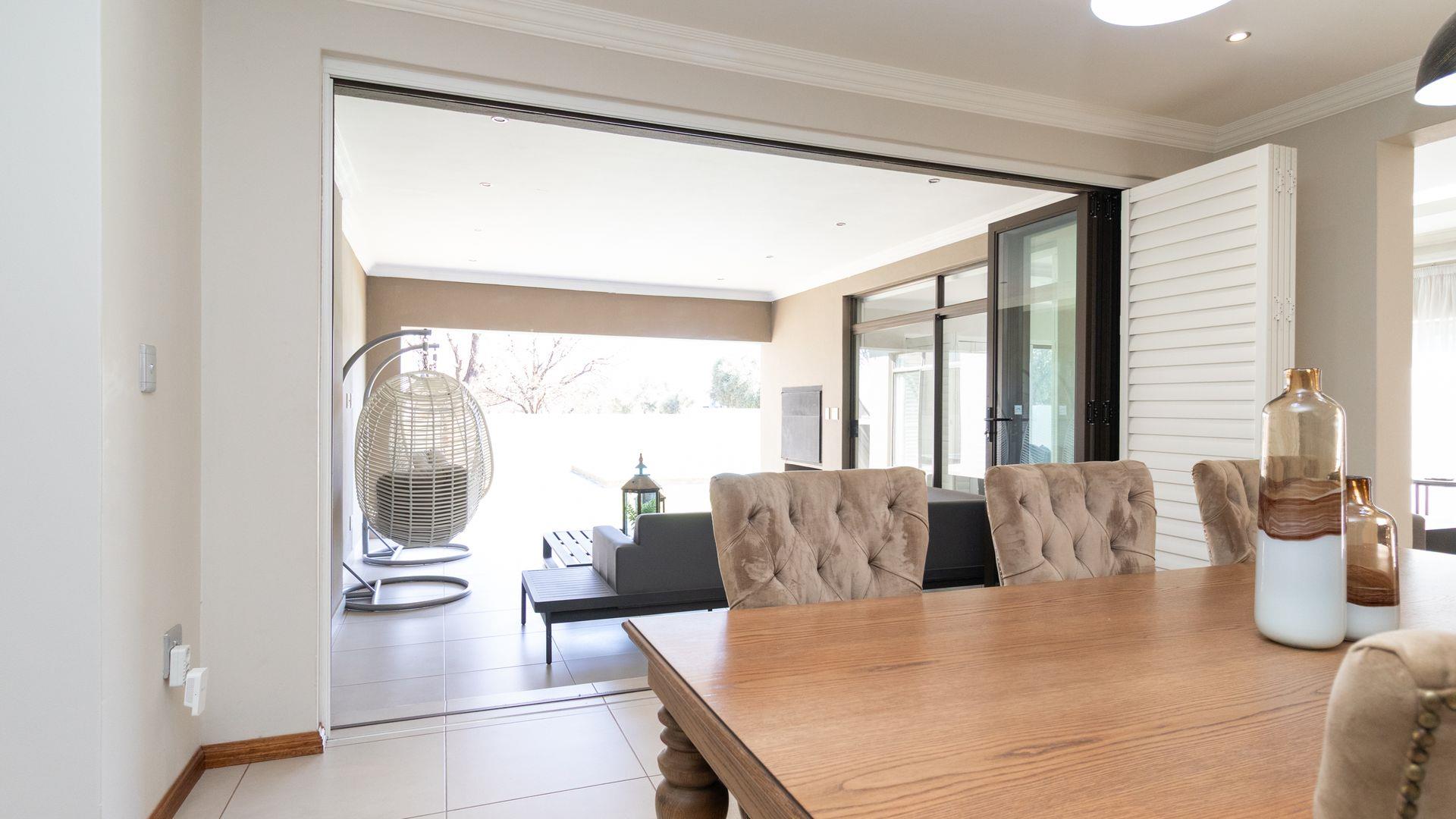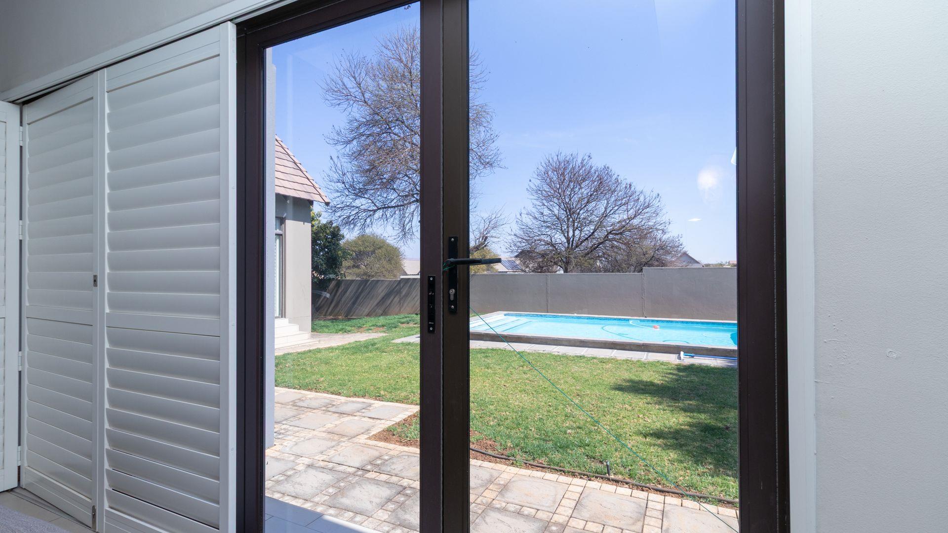 Step outside to the inviting patio, equipped with a built-in braai, ideal for outdoor dining and entertaining. The main bedroom offers direct access to the patio and overlooks a sparkling pool, creating a serene retreat within your own home.