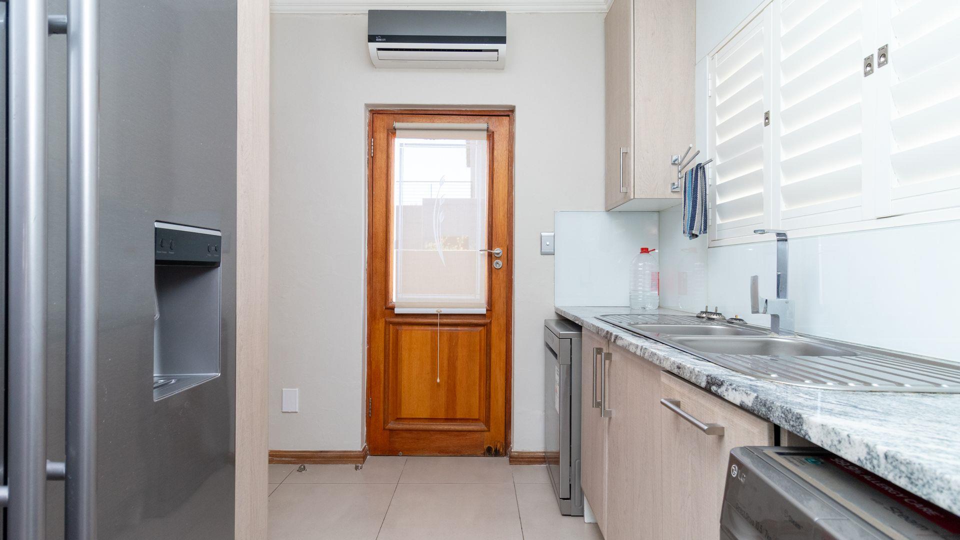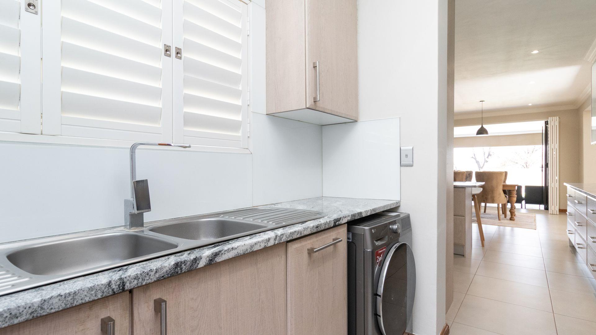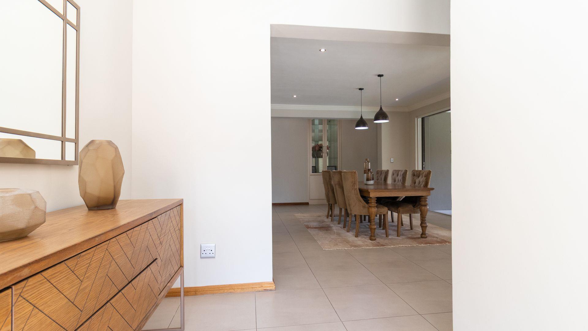Step outside to the inviting patio, equipped with a built-in braai, ideal for outdoor dining and entertaining. The main bedroom offers direct access to the patio and overlooks a sparkling pool, creating a serene retreat within your own home.