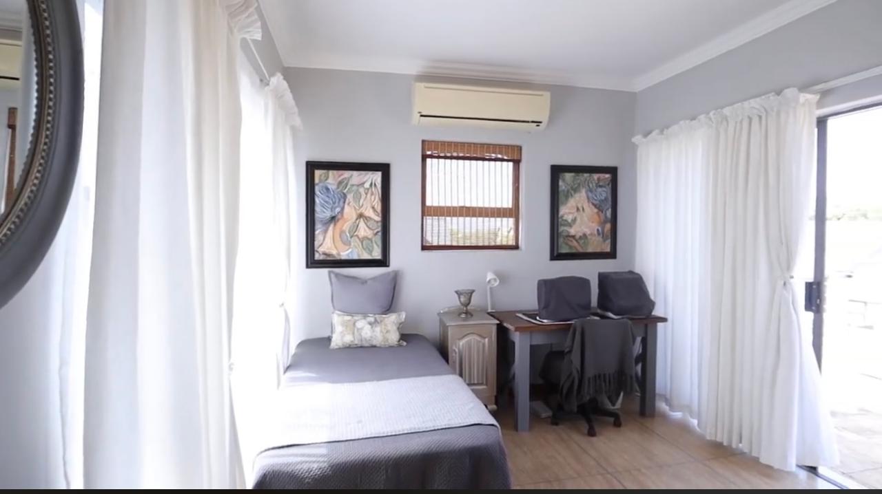 The heart of the home is the open-plan dining area that flows into a large kitchen, perfect for culinary enthusiasts and family meals. Additionally, there is a braai room equipped with stacking doors, creating a versatile indoor-outdoor living space for year-round enjoyment.