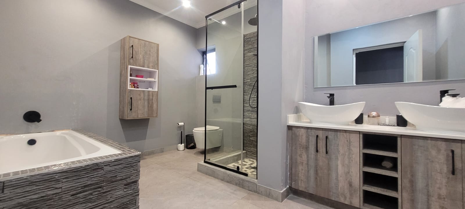 This inviting home features a spacious open-plan design that seamlessly connects the modern kitchen and separate scullery to the living and TV room areas, creating an ideal space for family gatherings and entertaining. An indoor entertainment area with a built-in braai ensures year-round enjoyment, while an additional indoor playroom offers versatility for families with children or those seeking extra recreational space.
