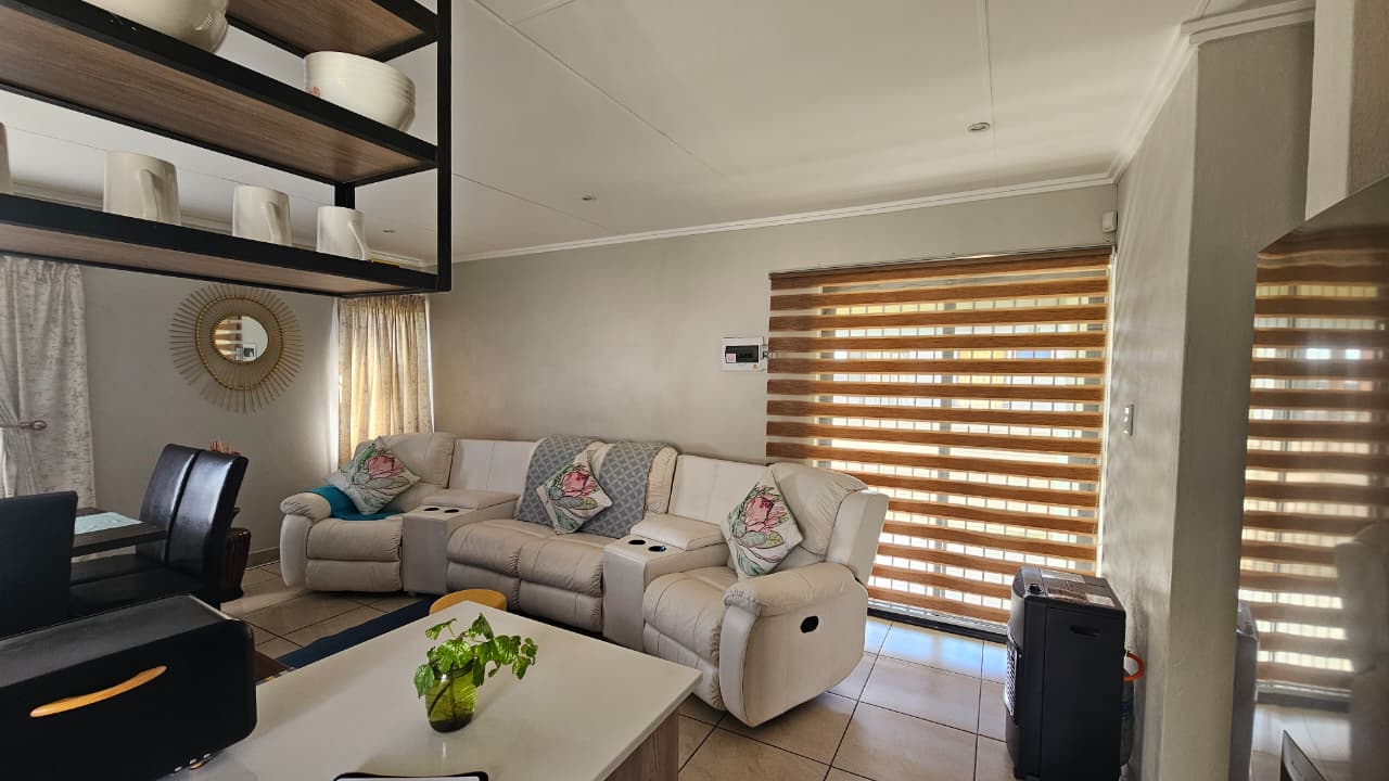 Enjoy a covered patio, solar geyser, washing machine provision, and covered parking for 2 vehicles. Conveniently close to all amenities.