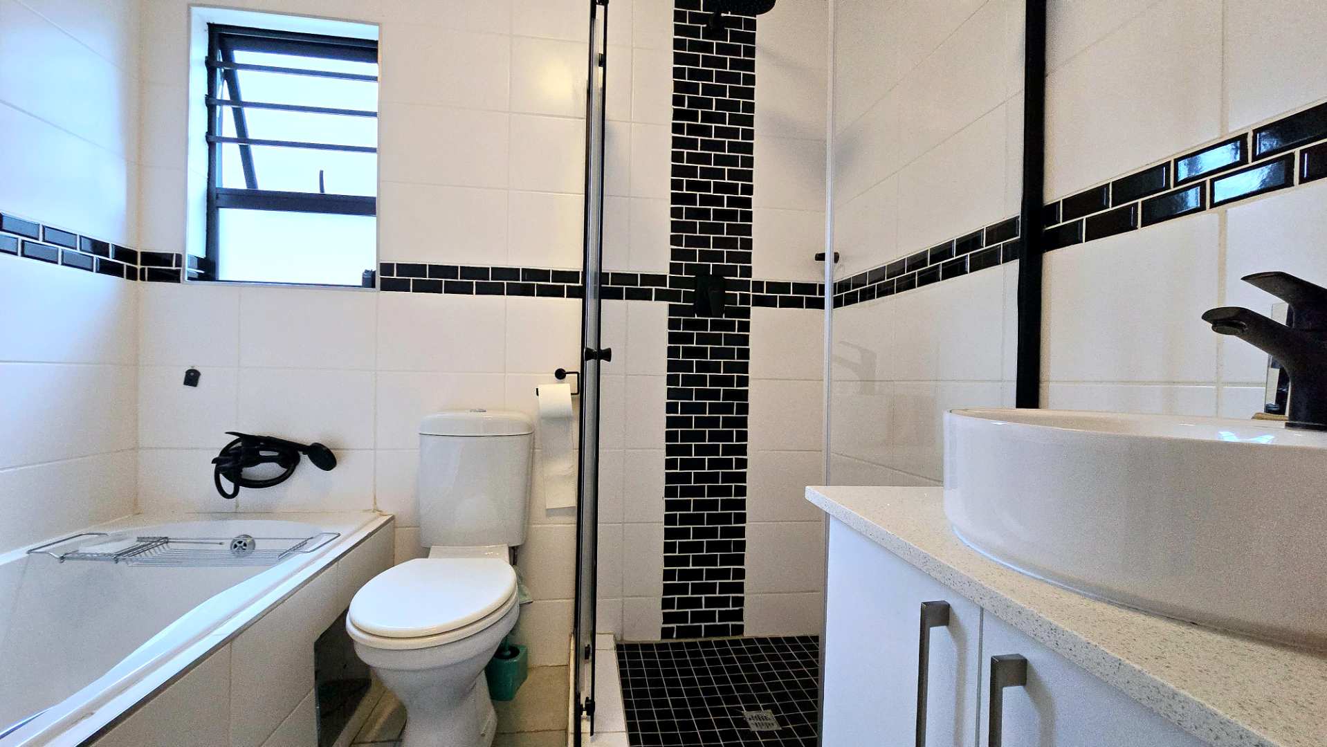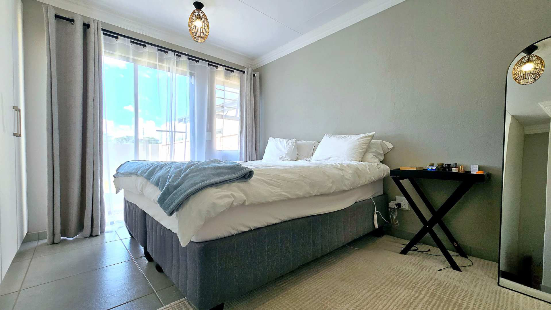 The home features three spacious bedrooms, including a generous main bedroom with a full ensuite bathroom and sliding doors that open directly to the private garden, perfect for enjoying fresh air and natural light. A second separate full bathroom serves the remaining bedrooms and guests.