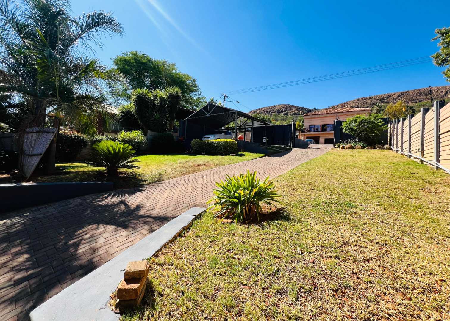 The partially paved yard features a beautifully landscaped garden, providing a tranquil outdoor retreat. Security is a priority with an electric fence surrounding the property. Although there are two automated gates, please note that the motors require maintenance.