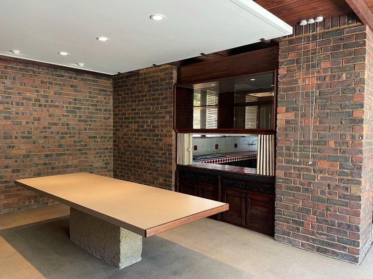 Designed by renowned architect Philip Viljoen, this home boasts a simplistic yet elegant design that maximizes natural light through its striking wooden-framed, floor-to-ceiling windows. The layout is thoughtfully designed with all rooms situated around a central feature courtyard, creating a very unique and inviting living space.