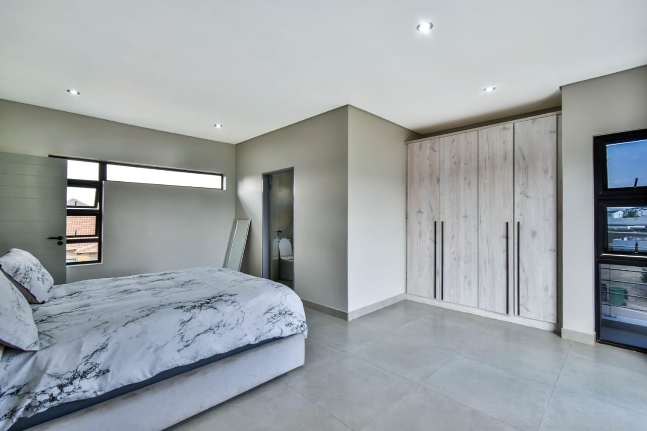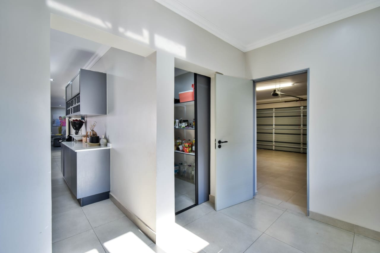 Discover contemporary living in the highly sought-after Savannah Country Estate. This stylish residence welcomes you with an inviting entrance hall that flows into spacious open-plan living areas, including a lounge and dining room. The modern kitchen is fitted with quality finishes and a separate scullery for added convenience. Folding doors open to a private garden, sparkling swimming pool, and patio with a built-in braai—ideal for effortless entertaining.