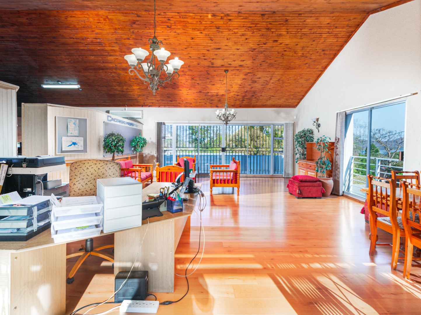 The property also includes a generous loft with wood ceilings, ideal as a master bedroom, home office, or games room. Its multi-level layout provides flexible usage options, with the lower level offering storage space and additional rooms that open into large living areas.