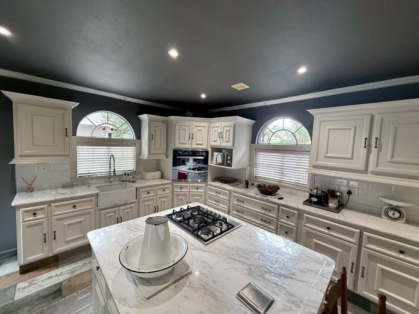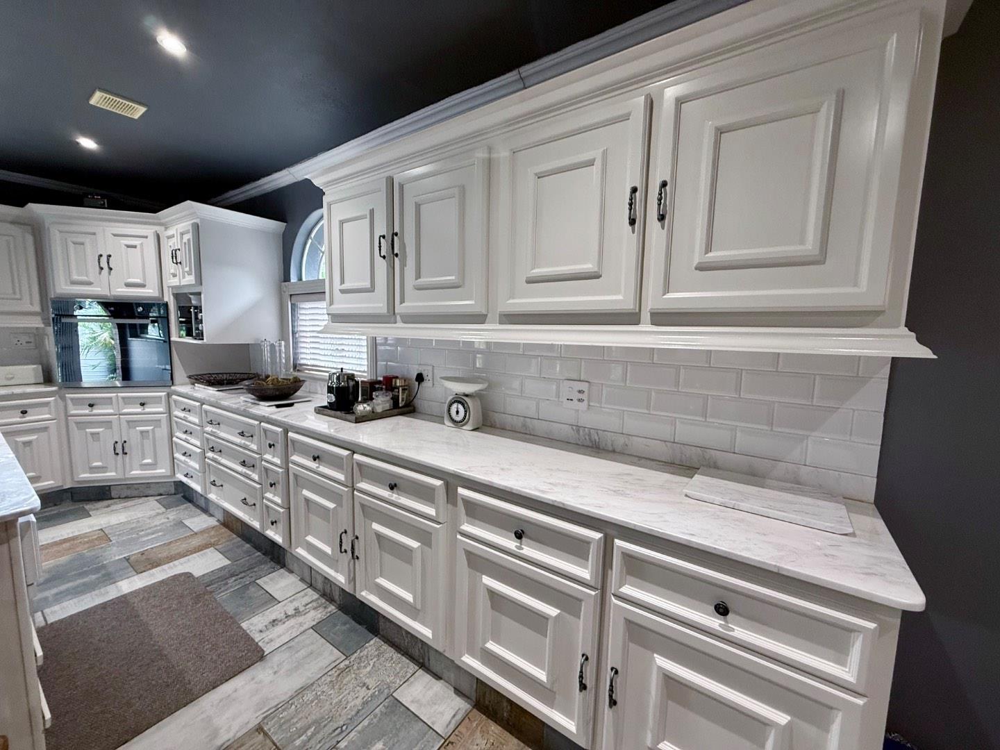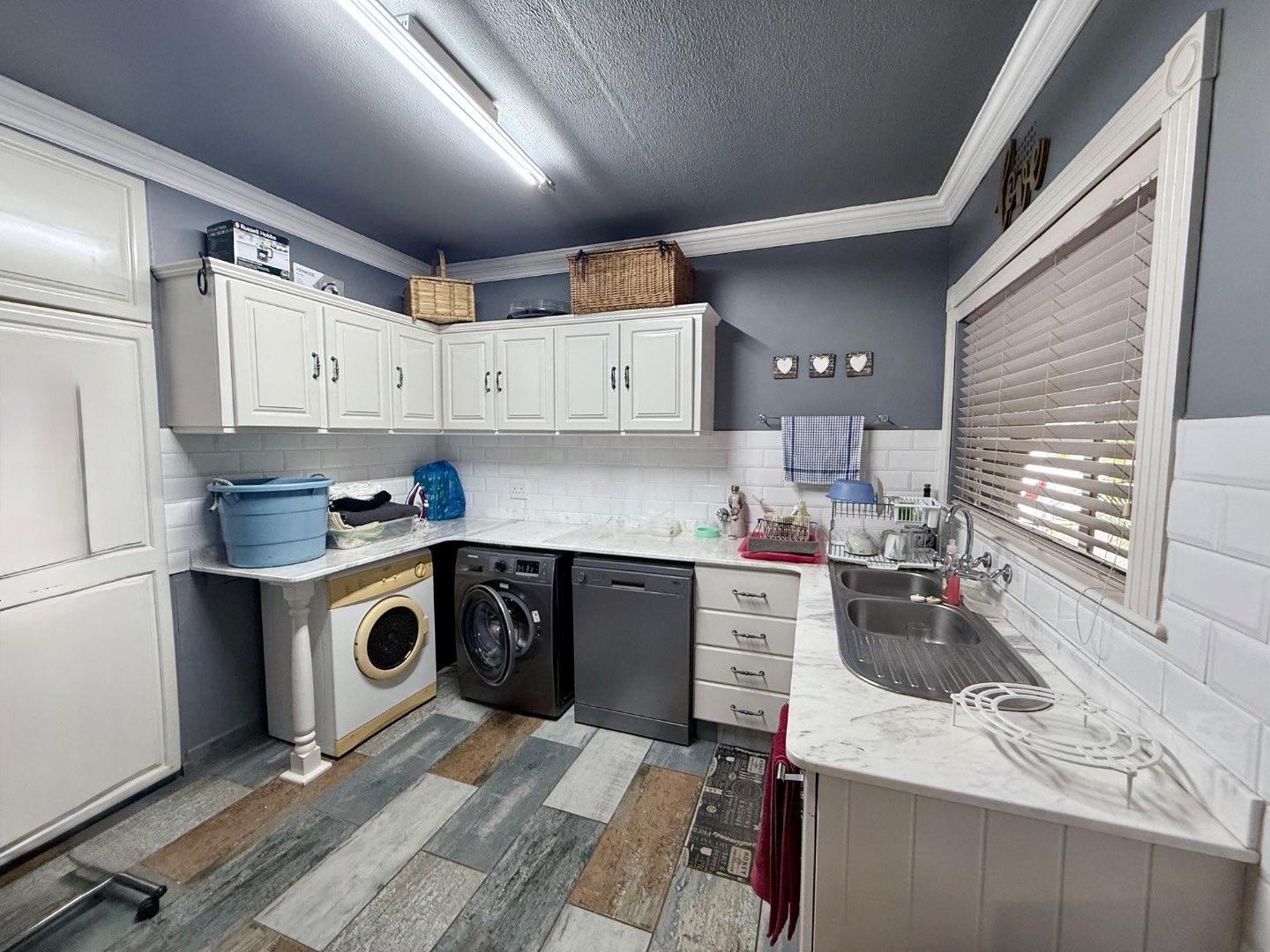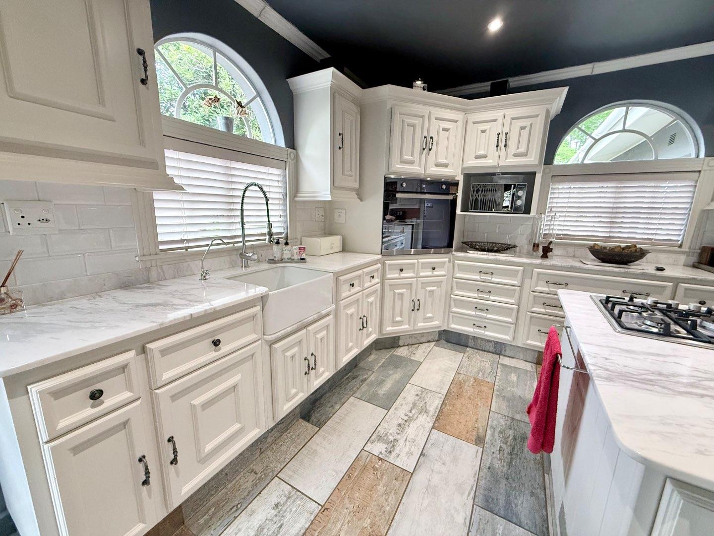 The heart of the home is a beautifully renovated kitchen, designed with both style and functionality in mind. Ideal for the avid cook, it offers ample built-in cupboards, a gas stove, electric oven, and a separate scullery with generous storage space – a true standout feature.