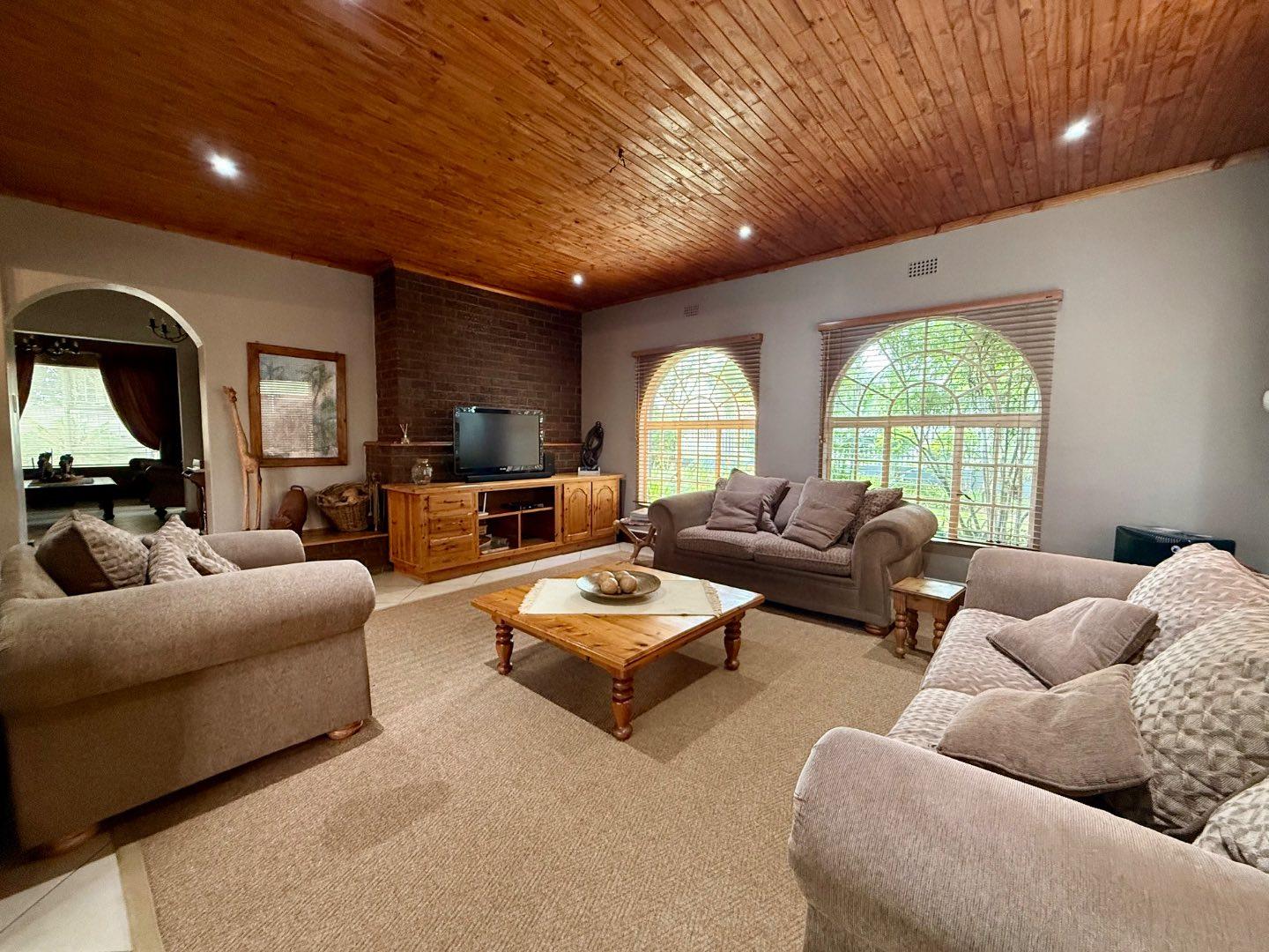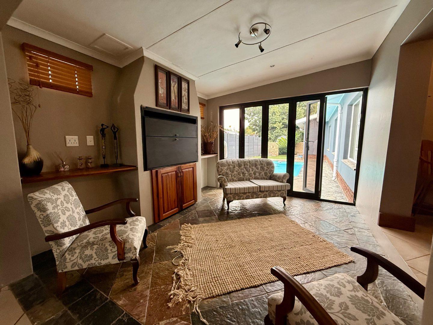 As you enter through the front door, you are greeted by spacious, flowing living areas. The large TV lounge with a cozy fireplace seamlessly leads to a built-in braai area overlooking the sparkling swimming pool, creating the perfect setting for relaxed family living and entertaining. A convenient bathroom with a shower services the pool area.
