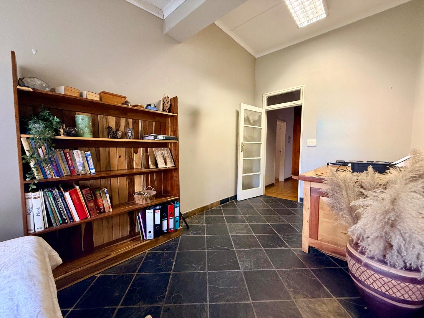 A dedicated study provides the ideal work-from-home setup. The home offers four spacious bedrooms, all fitted with ample built-in cupboards. The main bedroom includes a modern en-suite bathroom with a large walk-in shower, while the remaining bedrooms are serviced by a separate bathroom and toilet.